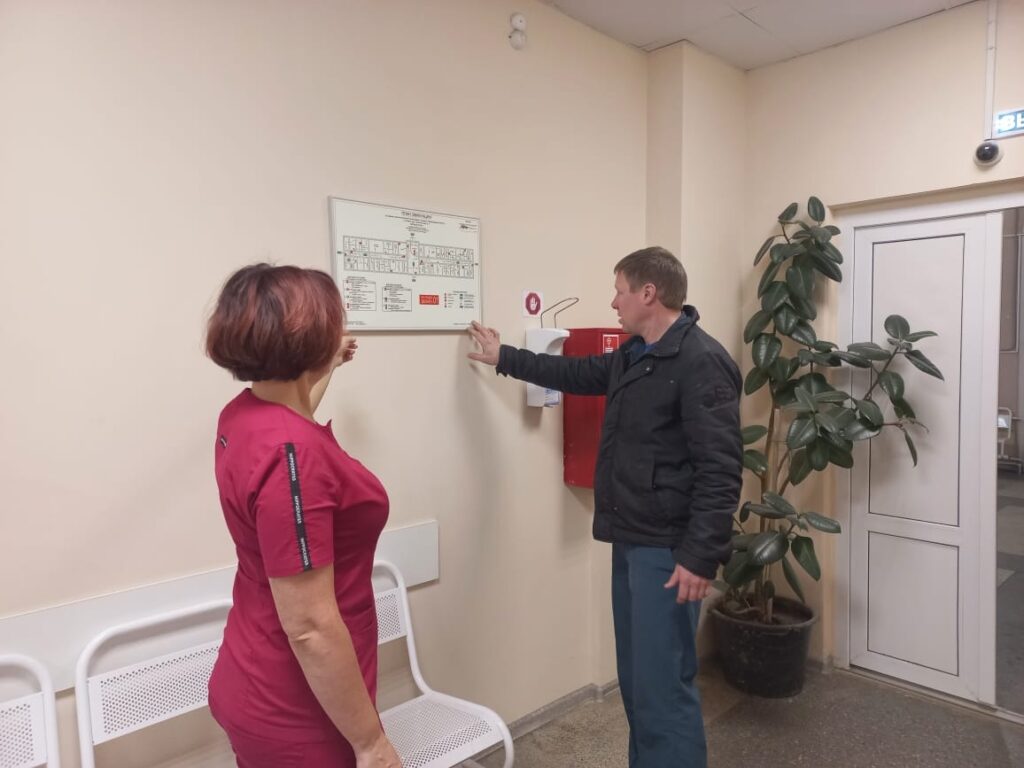 Мы еще раз прошли по путям эвакуации, посмотрели, где размещены первичные средства пожаротушения. Что мы будем делать в первую очередь, в случае обнаружения пожара, куда бежать, кого куда выводить, что делать с теми, кто потеряет сознание и другие вопросы пожарной безопасности были озвучены нами в ходе беседы.
