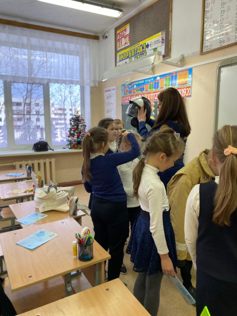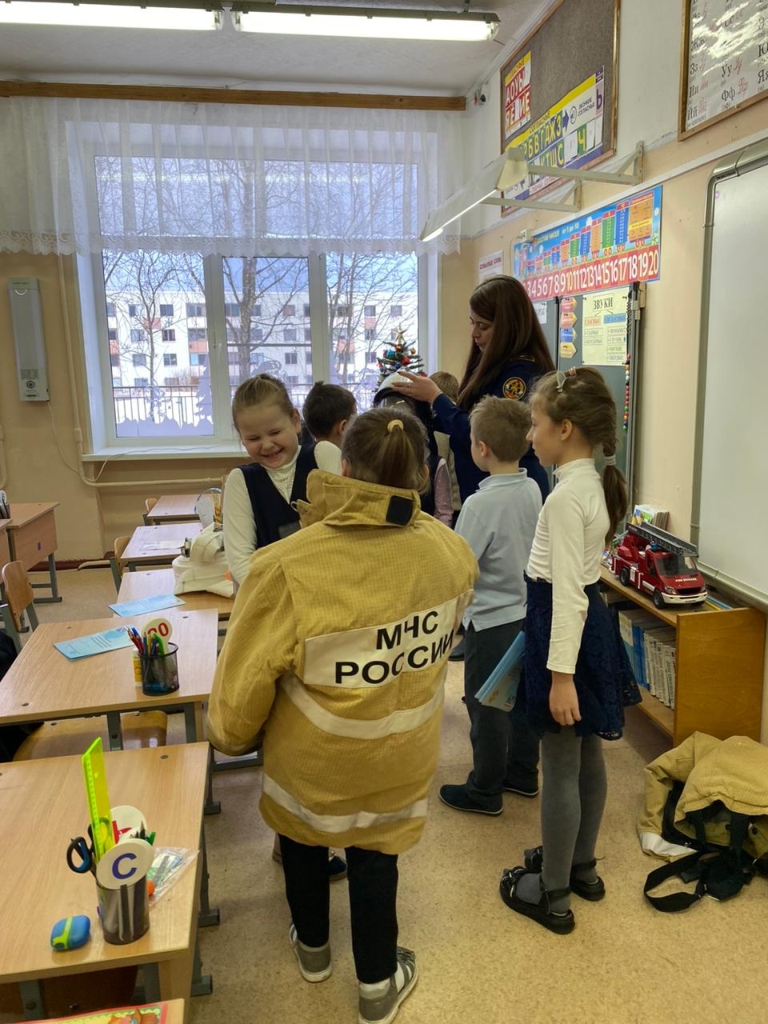 На уроке подробно изучили, как обезопасить себя и свой дом от пожара, о запрете выхода на лёд, и о действиях в случае возникновения возгорания. Детям раздали памятки и паспорта безопасности школьников Ломоносовского района.