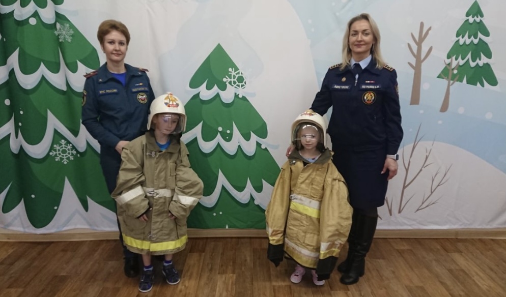 Ребятишки с восторгом примеряли каску пожарного и куртку огнеборцев и были удивлены весом формы. Уж больно она оказалась тяжела! А если вспомнить, что все спасатели и пожарные еще носят с собой инструменты и дыхательные аппараты – и вовсе возникает вопрос, как же им удается так быстро реагировать на опасность! Кульминацией встречи стало поздравление друг друга с Новым годом и общее фотографирование!