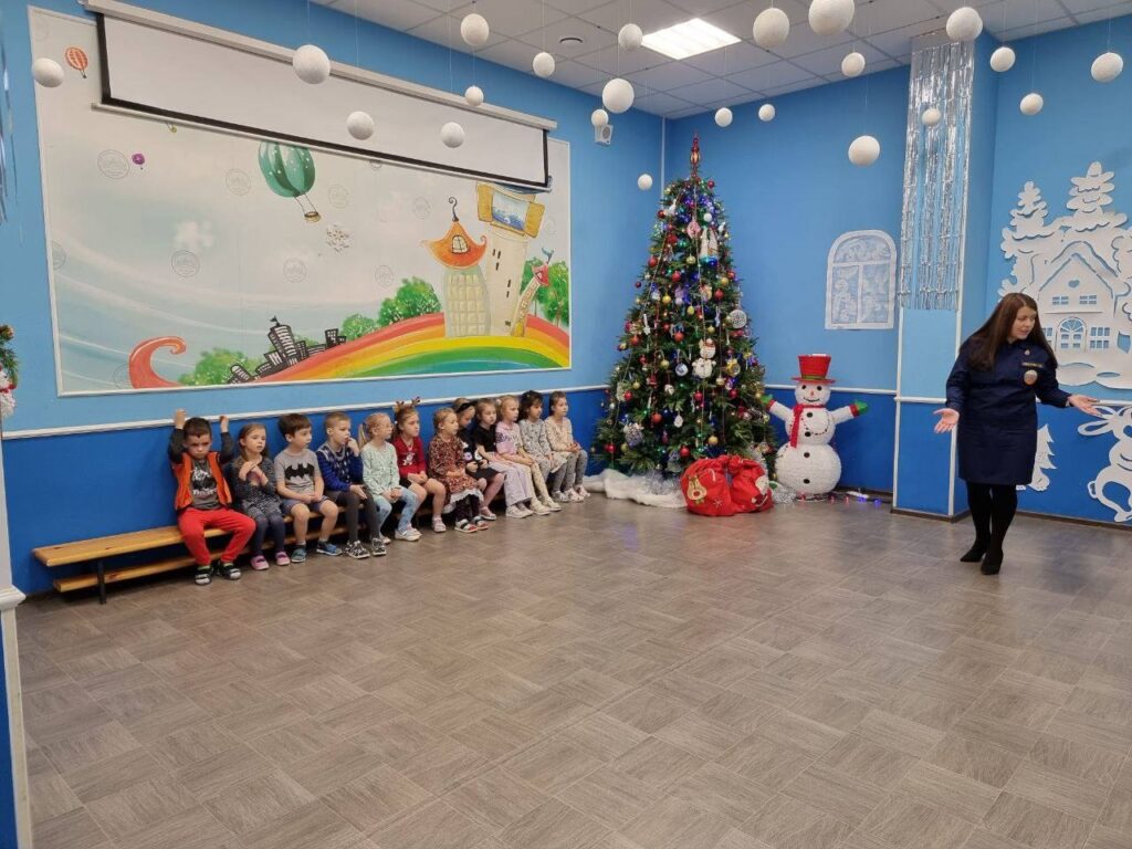 27 декабря 2022 года инструктор по противопожарной профилактике Ломоносовского местного отделения ВДПО ЛО Ахмадуллина Олеся провела занятие с воспитанниками детского сада «Маленькая страна» поселка Новогорелово Ломоносовского района.