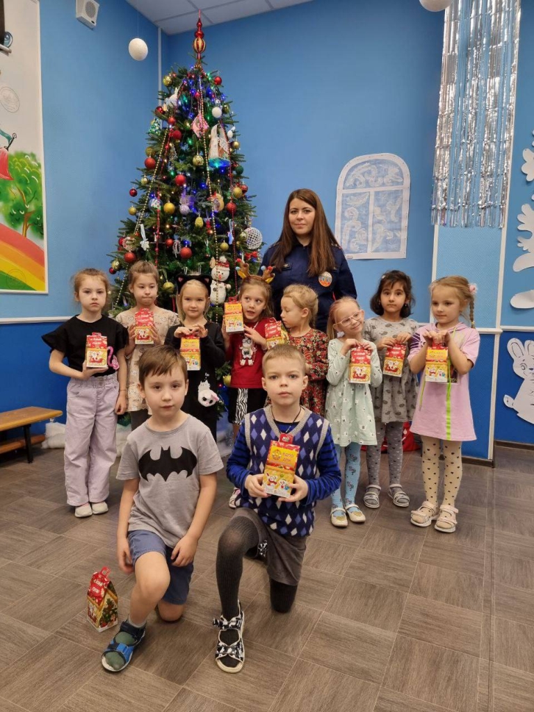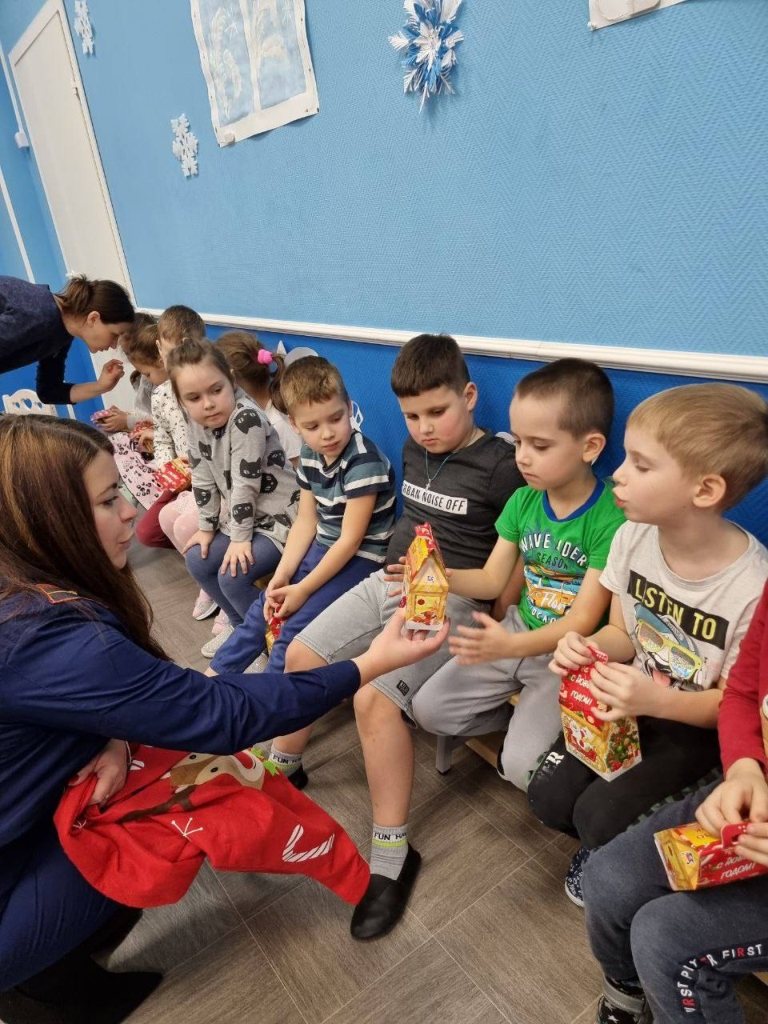 Дети были очень рады встрече, поздравлениям и конечно же подаркам от Ломоносовского местного отделения ВДПО ЛО.