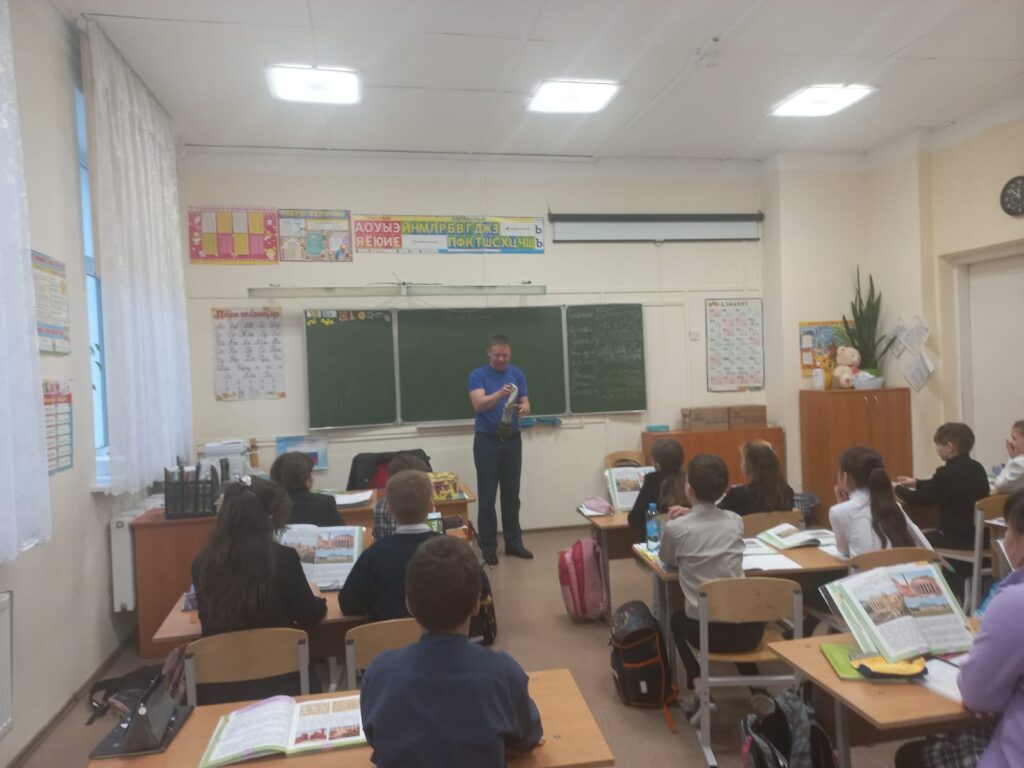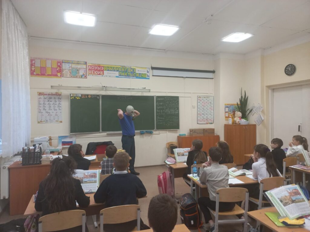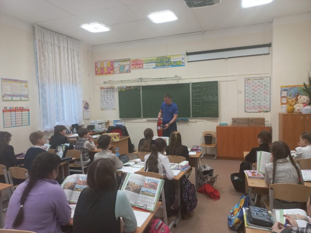 Сотрудник Гатчинского местного отделения ВДПО ЛО пришел к учащимся 4-ого класса. Ребята сначала прослушали небольшую лекцию на тему соблюдения правил пожарной безопасности в условиях чрезвычайной ситуации как в школе, так и дома.