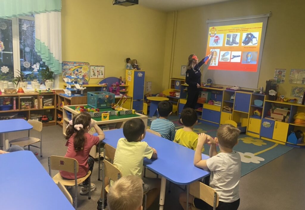 В детском саду № 14 с воспитанниками подготовительной группы “Золушка” было проведено занятие по пожарной безопасности.
