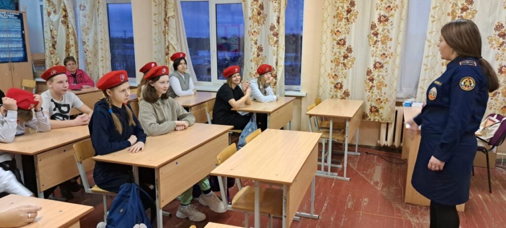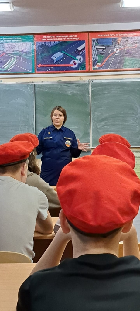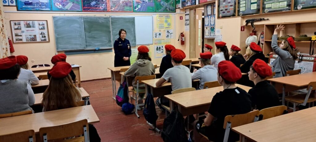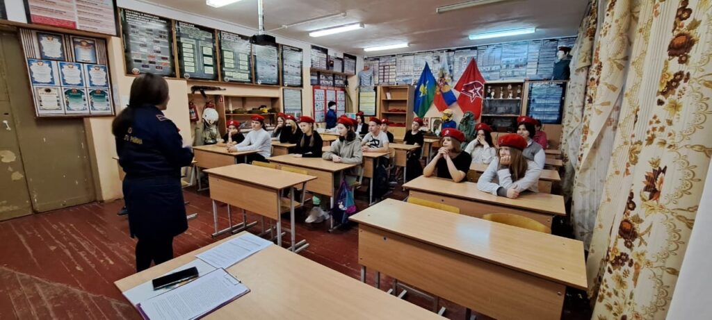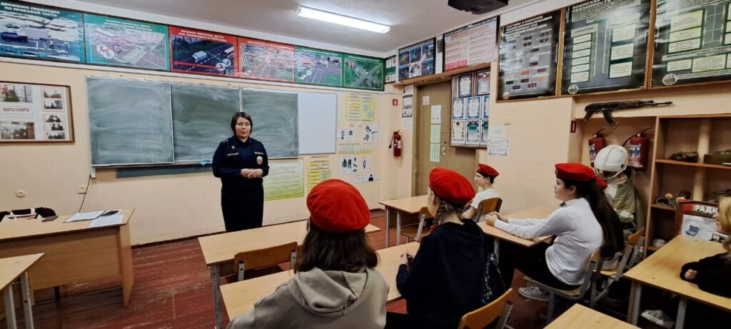 27 января 2023 г. инструктор по противопожарной профилактике Ломоносовского местного отделения ВДПО ЛО Ахмадуллина О.В. провела урок в МОУ «Гостилицкая школа» для учащихся 7 «б» класса отряда Юнармии «Спецназ».