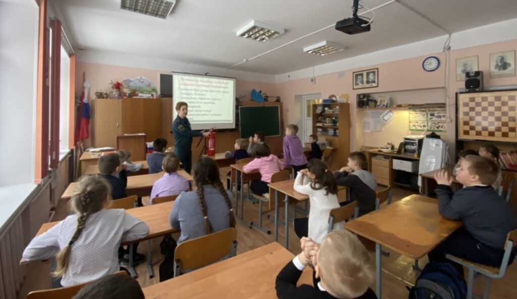 Профилактическая встреча по пожарной безопасности прошла в Лисинском центре образования с учениками начальной школы и воспитанниками детского сада.