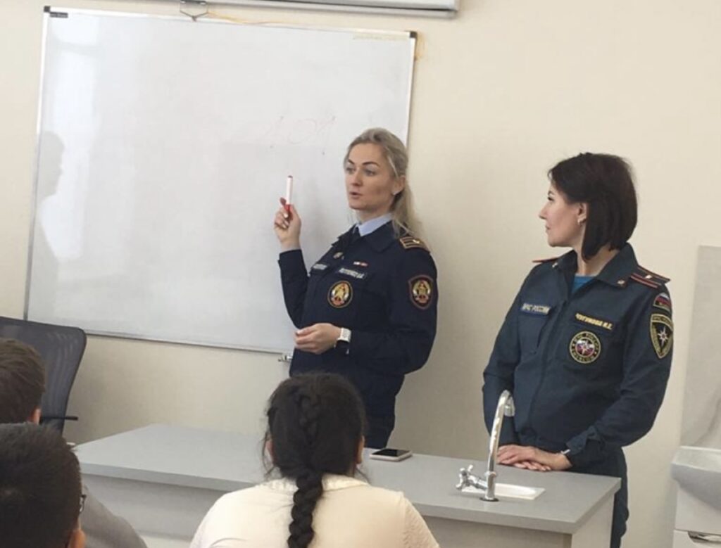Во второй части урока обсудили порядок действий на случай пожара – что предпринимать в первую очередь, как передвигаться в задымленном помещении, как пользоваться первичными средствами пожаротушения и прочее.
