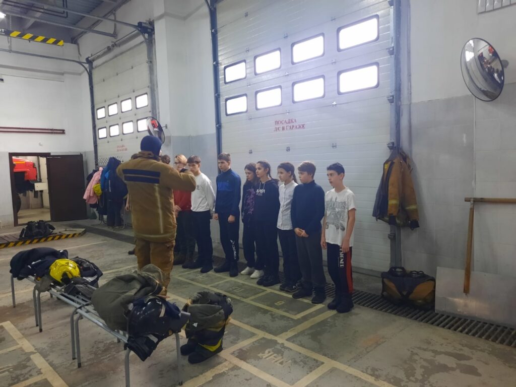 Ребятам опытные сотрудники пожарной части показали боевую одежду, правила ее одевания, и другие хитрости, чтоб получилось быстрее всех.