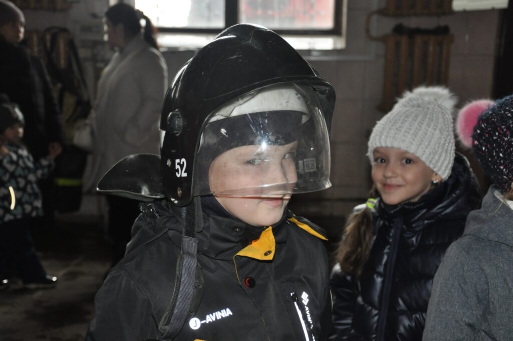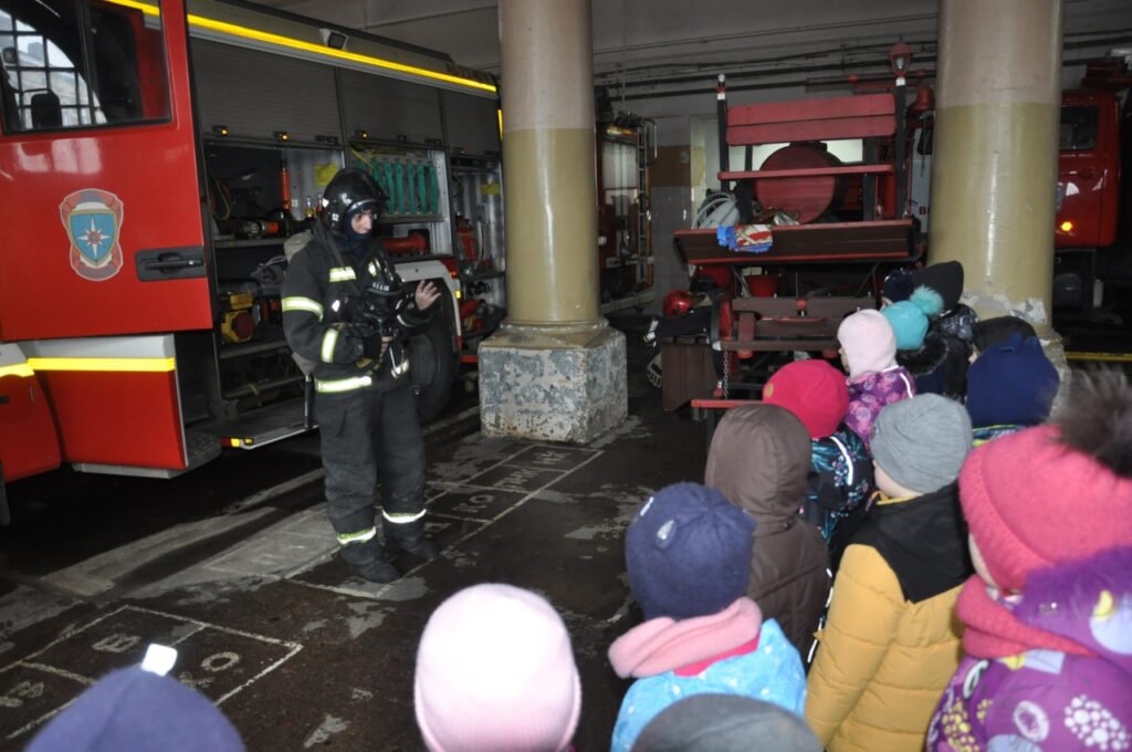 В первую очередь ребят, конечно же, заинтересовали пожарные машины. В боксах для техники ребятам показали предметы боевой одежды, пожарно-спасательный инвентарь. Даже девчонкам было интересно примерить пожарную каску.