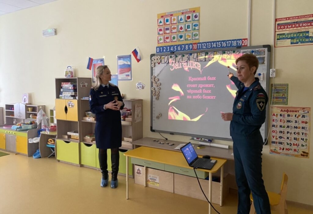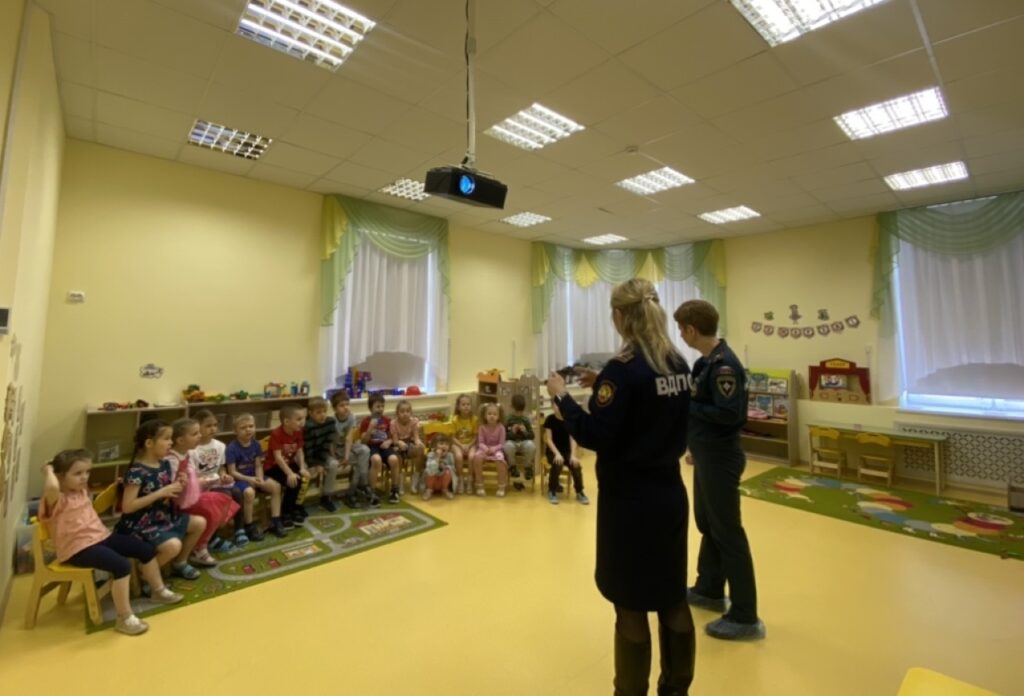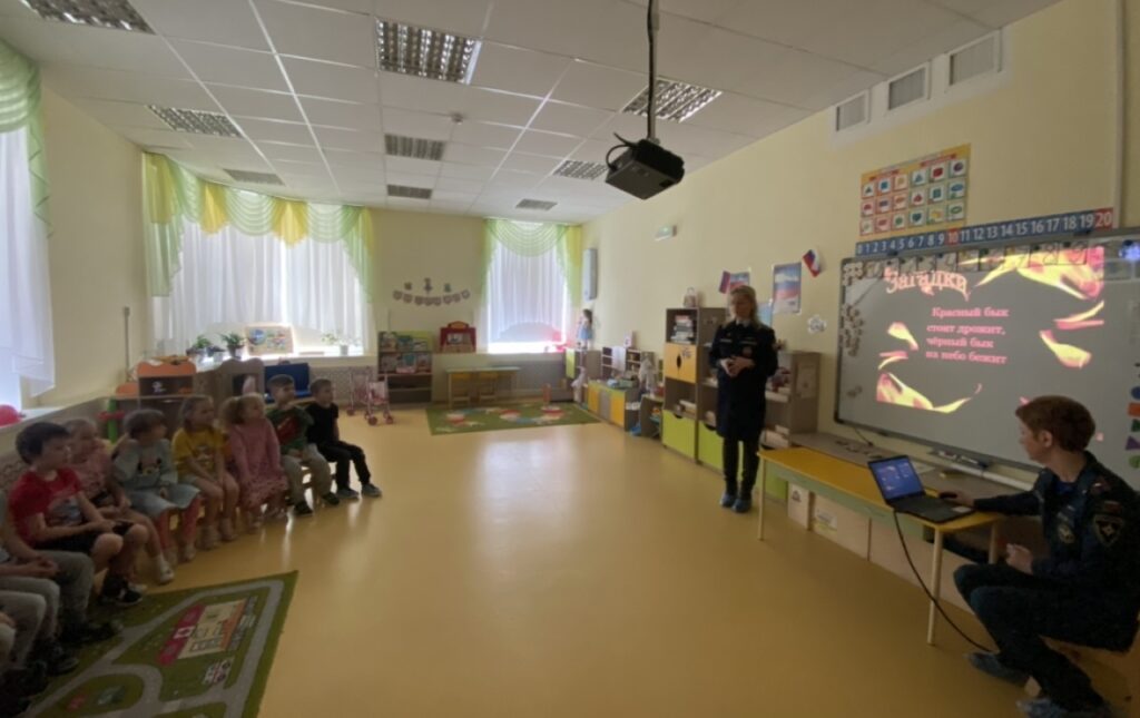 Профилактическое занятие по пожарной безопасности было проведено с воспитанниками старшей группы “Почемучки” в детском саду № 4 г. Тосно.