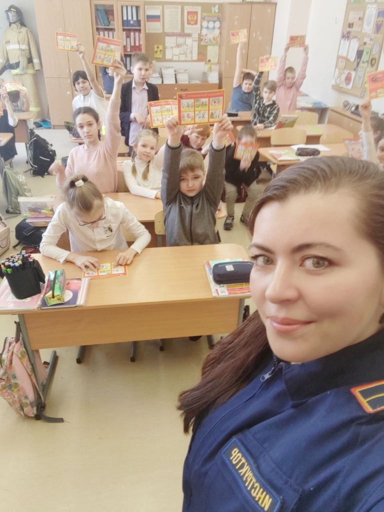 4 апреля 2023 года профилактический урок по пожарной безопасности прошел в Русско-Высоцкой школе с учениками четвёртого класса.