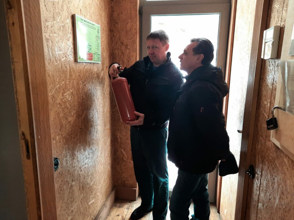 На начальном этапе надо выстроить систему безопасности данного объекта, в том числе и пожарную безопасность. С этой целью нас пригласили в офис продаж. Здесь вместе с сотрудниками Гатчинского отдела надзорной деятельности и профилактической работы мы провели мастер-класс по пожарной безопасности: что должно быть из первичных мер пожаротушения, какие правила надо соблюдать при строительных работах, как составляют инструкции и многое другое. На все эти вопросы мы постарались ответить 5 апреля 2023 года.