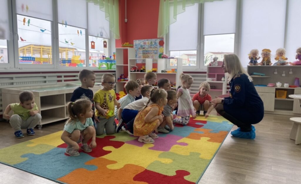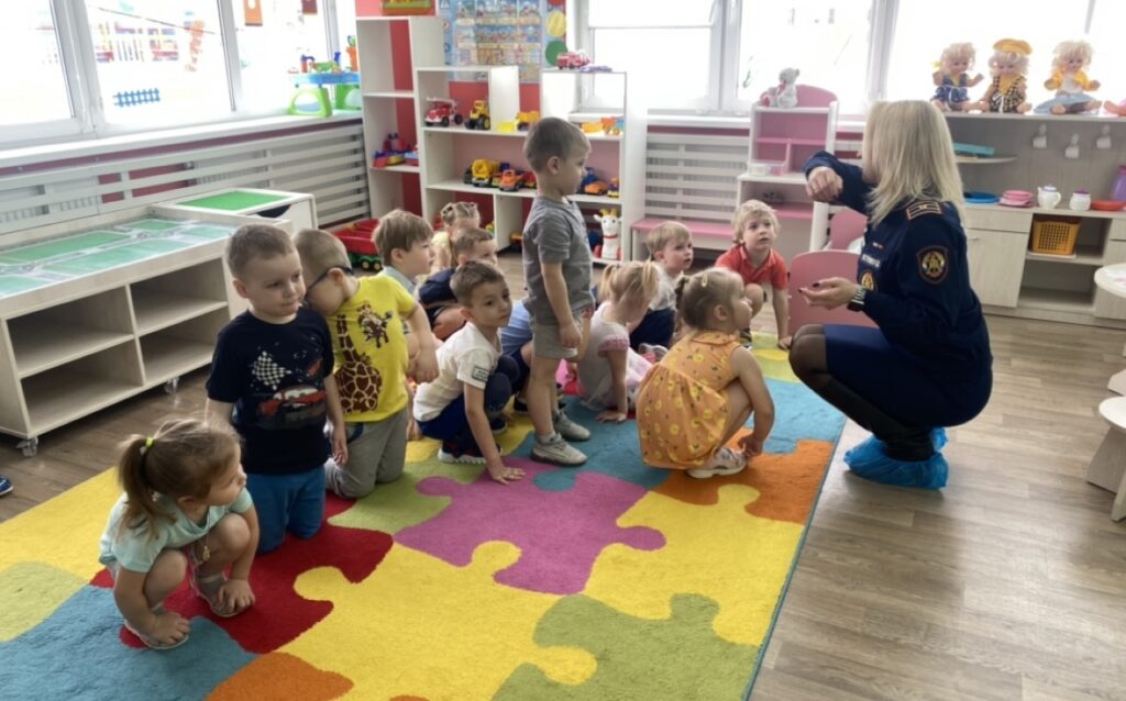 На днях в детском саду № 12 прошло занятие по пожарной безопасности с самыми маленькими ребятами — воспитанниками младшей группы, в возрасте 3-4 лет.