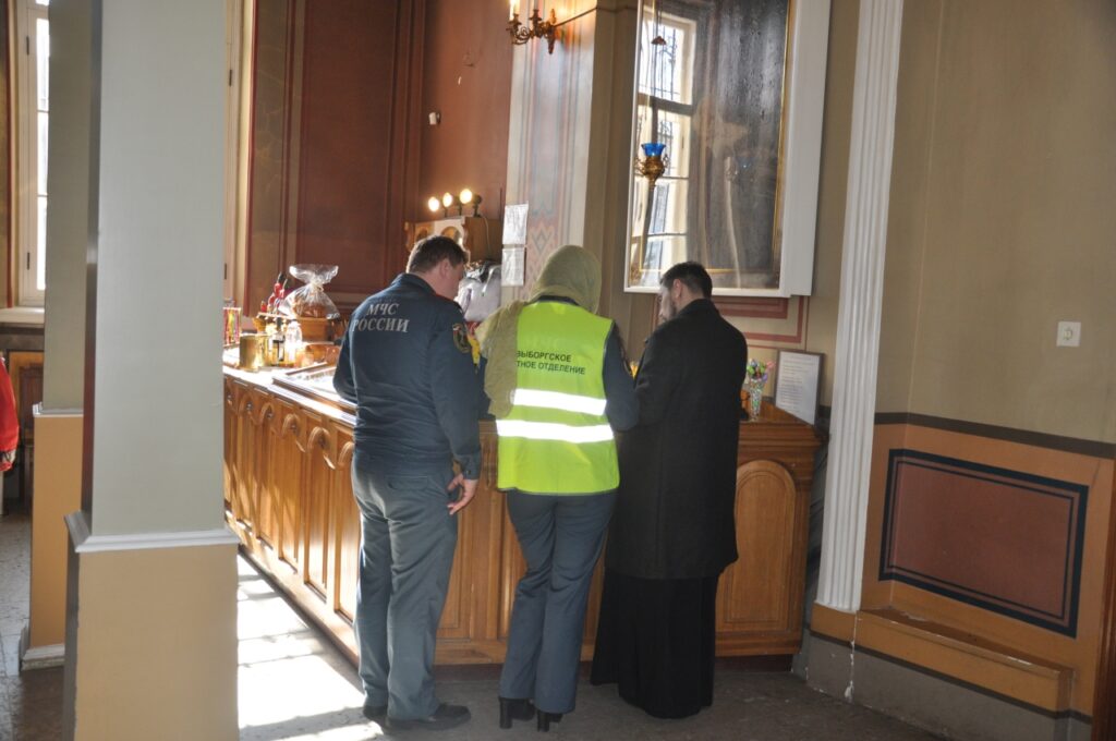 Сотрудники отдела надзорной деятельности и профилактической работы по Выборгскому району, совместно с сотрудниками 26 пожарно-спасательного отряда ФПС ГПС Главного управления МЧС России по Ленинградской области и Выборгского местного отделения Всероссийского добровольного пожарного общества Ленинградской области на протяжении недели проверяли, соблюдены ли в храмах правила пожарной безопасности.