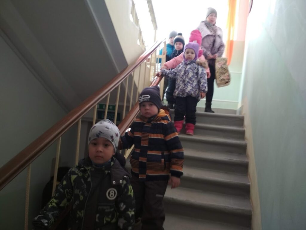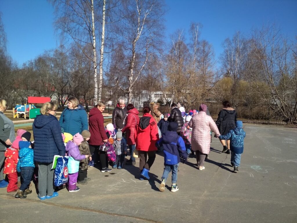 По сигналу системы оповещения персонал детского сада начал эвакуировать детей в безопасное место. В месте сбора сотрудники ВДПО проговорили с ребятами о действиях во время пожара, как себя свести, что можно делать, а что категорически запрещено.