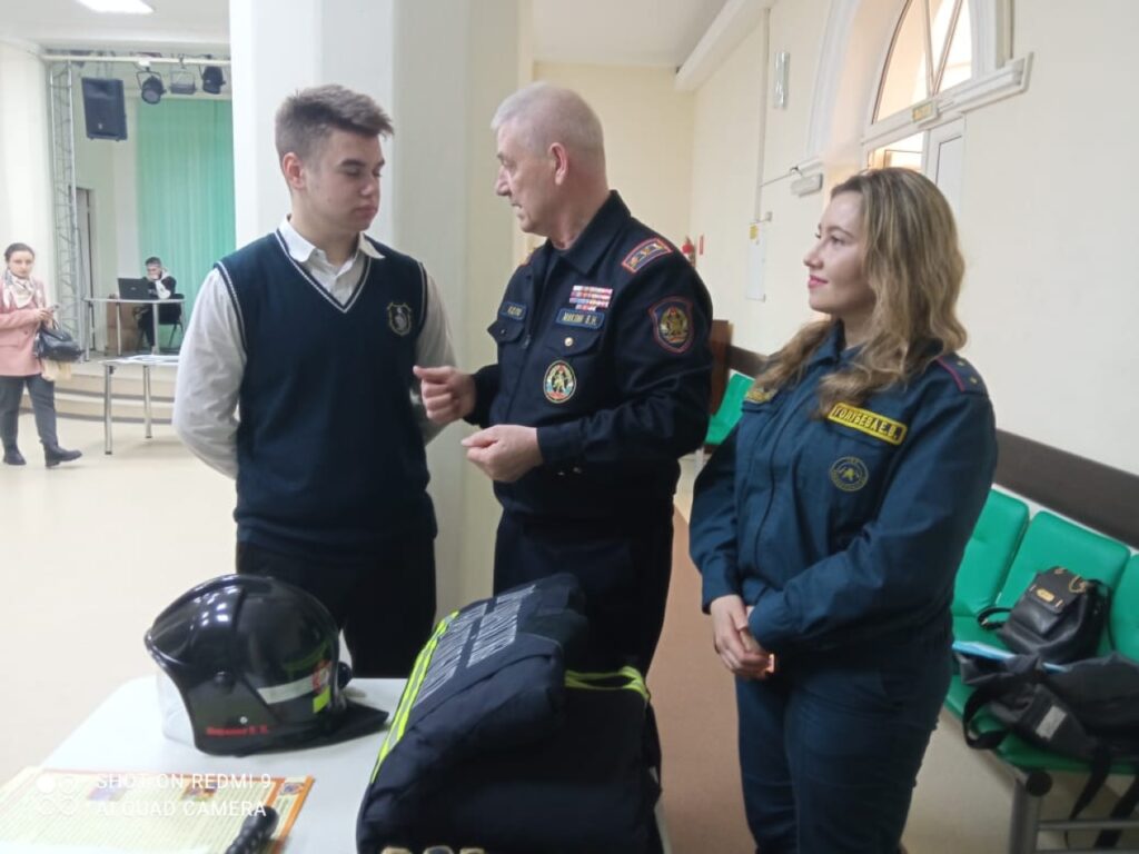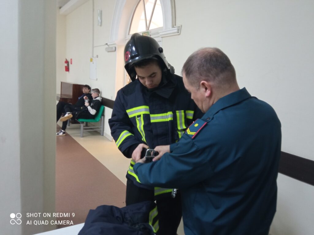 Для наглядности была продемонстрирована боевая одежда пожарного. Каждый желающий мог ее надеть.