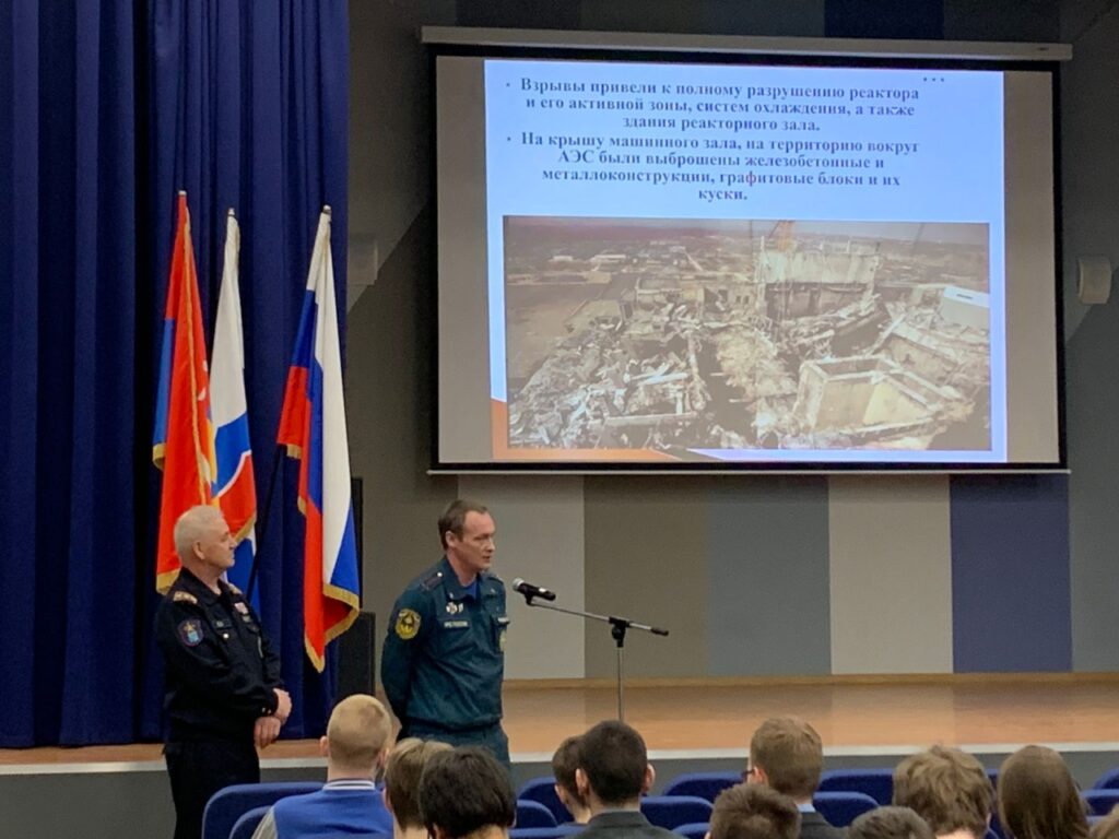 Перед учащимися 8-х классов выступили ликвидатор последствий аварии полковник Плахин Сергей Витальевич, заместитель Председателя совета Всеволожского местного отделения ВДПО ЛО Миклин Валерий Николаевич, начальник 96 пожарно-спасательной части Курашов Алексей Вячеславович. Каждый из них поделился своими воспоминаниями и впечатлениями о происшедшей в те годы трагедии, о тех мерах, которые принимаются в настоящее время, чтобы обеспечить безопасность жителей города и района.