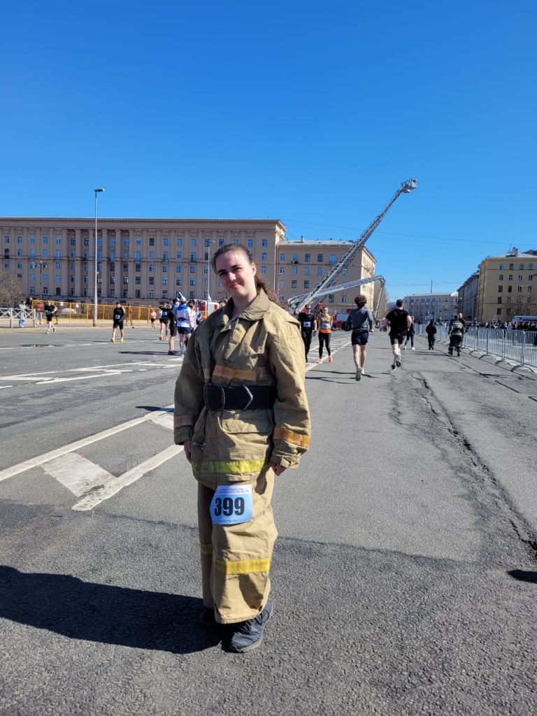 В полдень на проспекте Стачек стартовал традиционный легкоатлетический пробег, который в этом году состоялся уже в 46-й раз. В пробеге приняла участие добровольный пожарный Ломоносовского местного отделения ВДПО Саволайнен Анастасия под номером 399, а также спортсмены, учащиеся школ, колледжей, вузов, курсанты высших военных училищ, сотрудники предприятий, жители района.