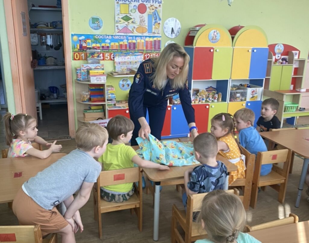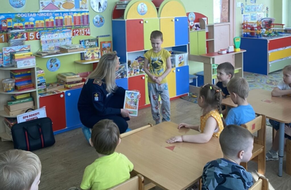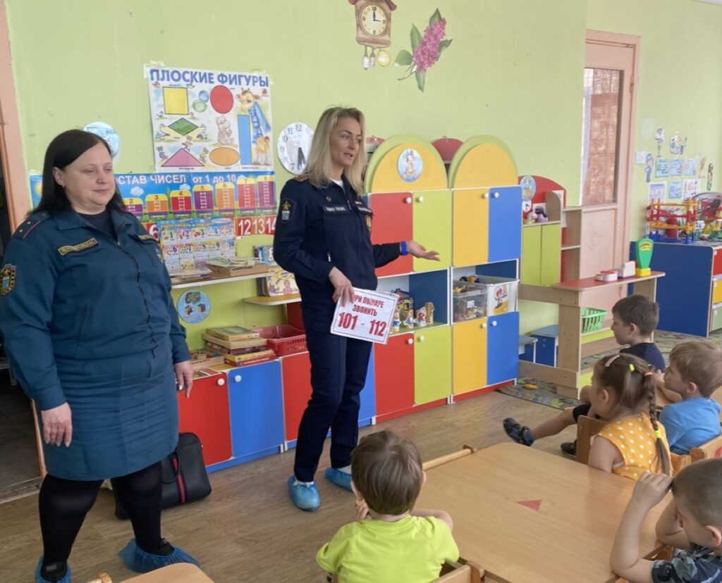 В гости к воспитанникам старшей группы «Колобок» приехали сотрудники отдела надзорной деятельности и профилактической работы Тосненского района и местного отделения ВДПО ЛО, а также инструктор противопожарной профилактики ПЧ № 111 им. Е. В. Рукавишникова. Вместе с детьми они повторяли правила пожарной безопасности, сделав акцент на принципах пожаробезопасного поведения на природе.