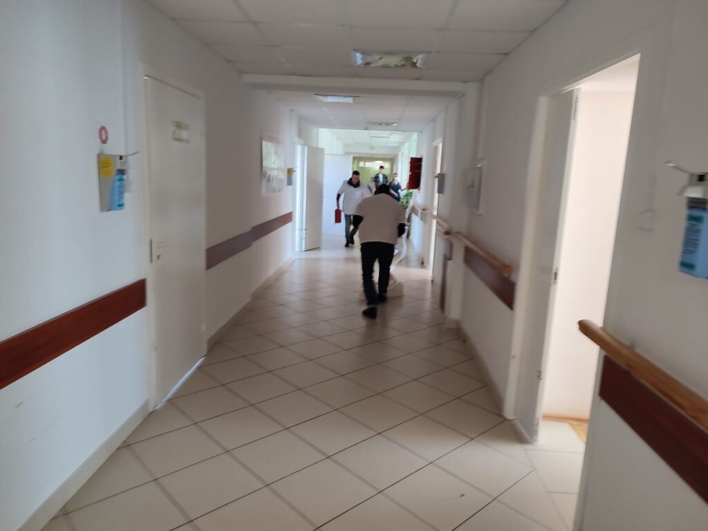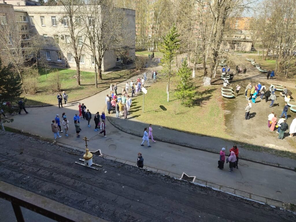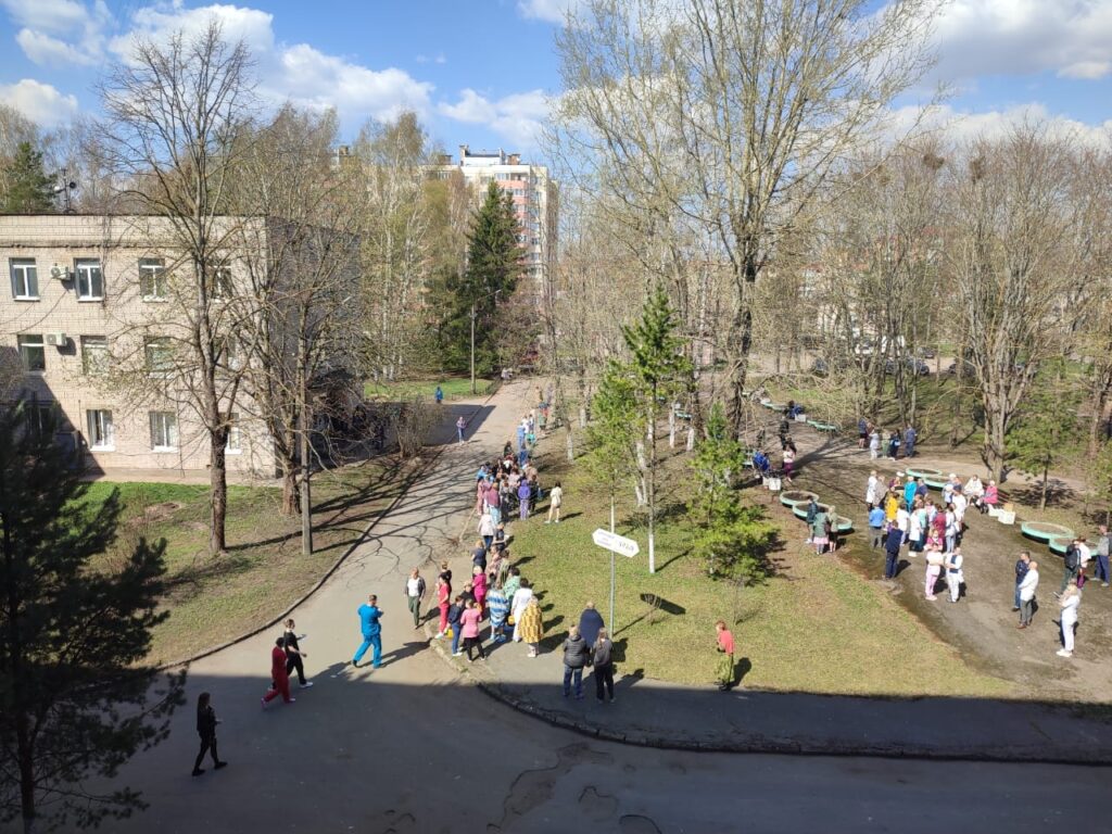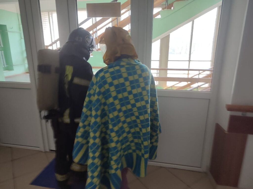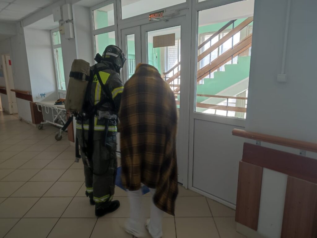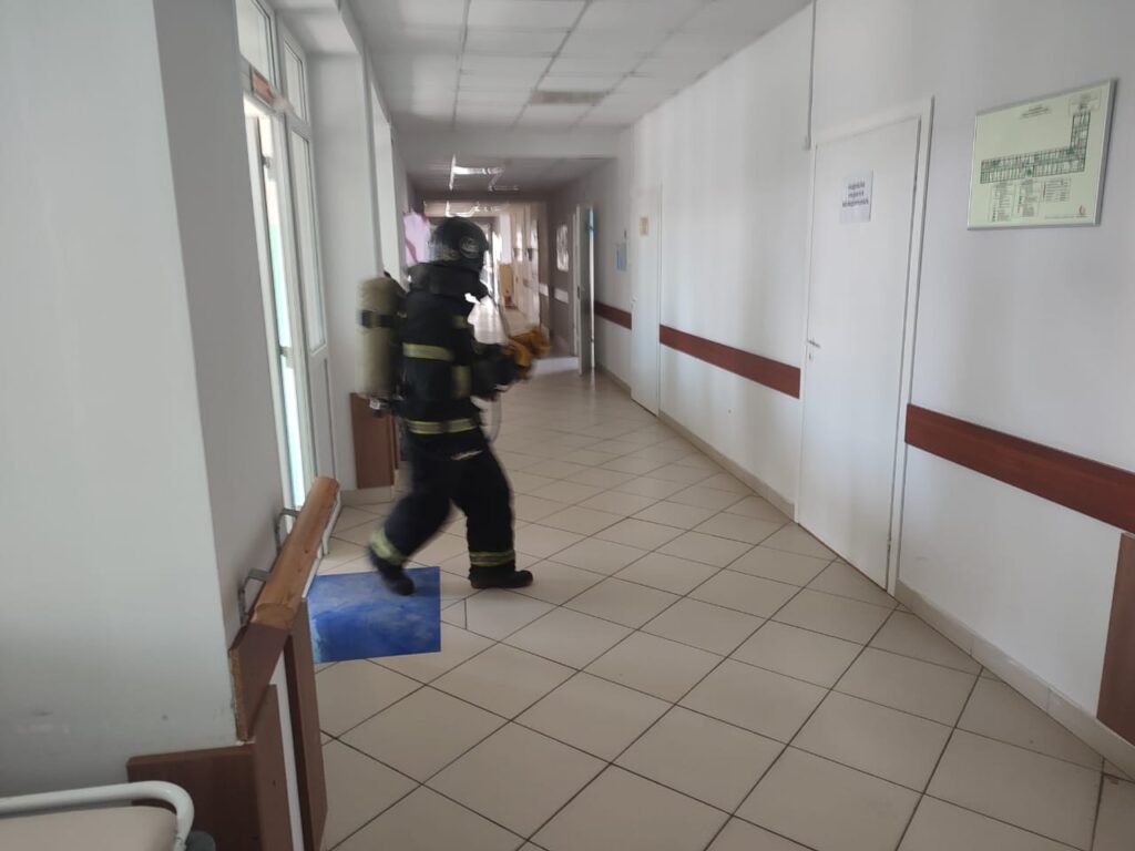 А уже буквально через пару часов те же пожарные, переодевшись в рабочую боевую одежду, поехали проводить тренировочную эвакуацию в Гатчинской больнице. Потому что – а вдруг пожар? Мы всегда должны быть готовы сразиться с огнем и спасти людей – таков девиз наших пожарных.