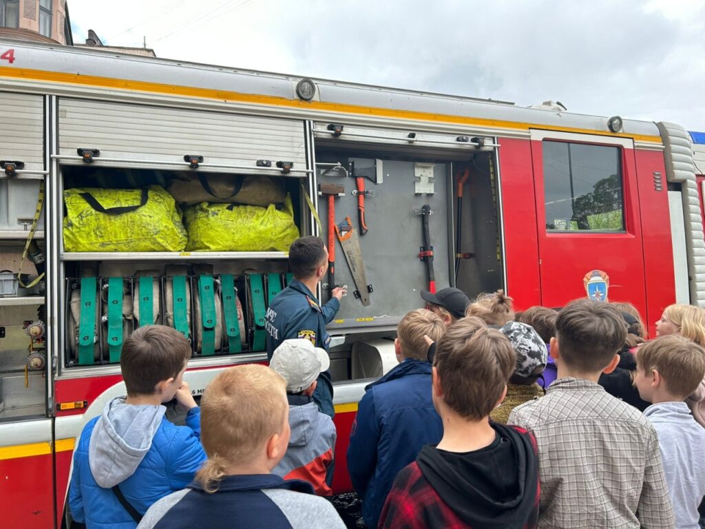Как уже принято особый интерес и восторг у детей при проведении подобных экскурсий всегда вызывает демонстрация пожарной техники и боевой одежды. И этот раз не стал исключением – школьники с удовольствием изучали оборудование пожарных автомобилей и боевую одежду огнеборцев.