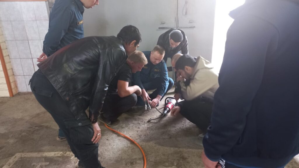 В ходе тренировки были отработаны занятия по работе с гидравлическими кусачками, прокладывание магистральных и рабочих рукавных линий к очагу пожара, с использованием мотопомпы.