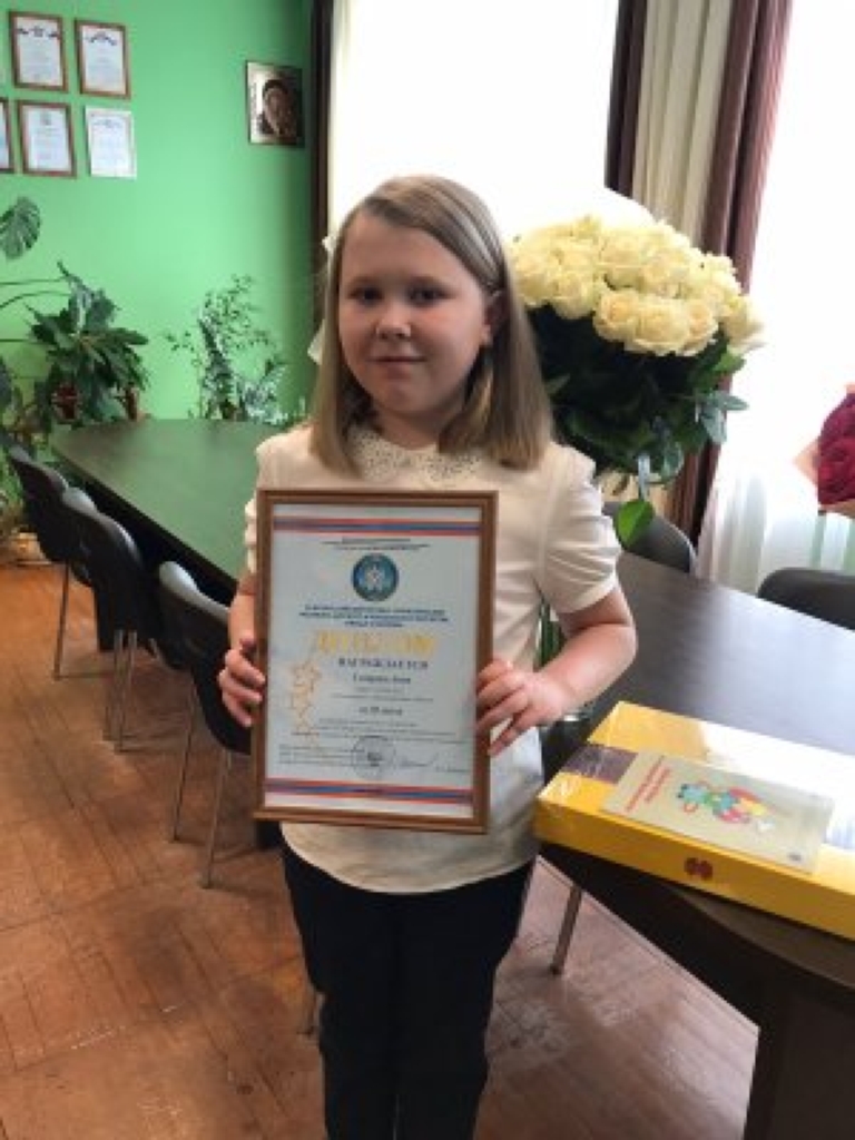 За третье место во Всероссийском героико-патриотическом фестивале детского и юношеского творчества «Звезда спасения» грамотой и ценным подарком была награждена ученица 4 класса Сахарова Аня.