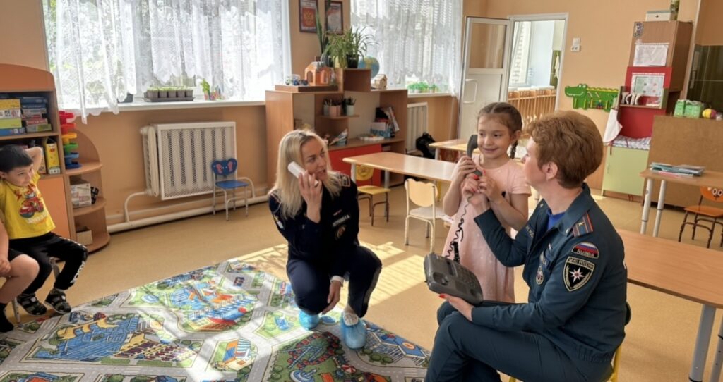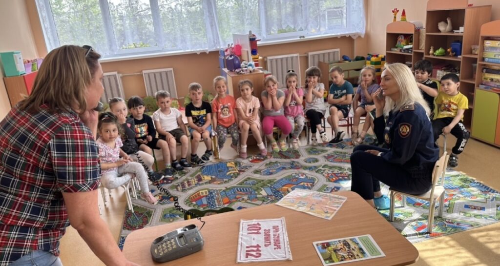 Чтобы сделать занятие интерактивным, провели игру, в которой ребята имитировали диспетчера пожарной охраны и условного пострадавшего. Они практиковали обращение по телефону, сообщали диспетчеру необходимую информацию о происшествии и вызывали пожарную охрану. Таким образом, дети смогли усвоить, как важно сообщать правильную информацию и быть готовыми к действиям в случае ЧП.
