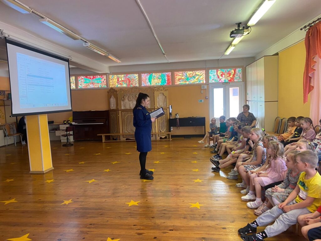 30 мая 2023 года для выпускников детского сада в д. Горбунки Ломоносовского района в рамках Всероссийской акции «Мои безопасные каникулы» инструктор по противопожарной профилактике Ломоносовского местного отделения ВДПО ЛО Ахмадуллина О.В. провела профилактическое мероприятие для трех групп.