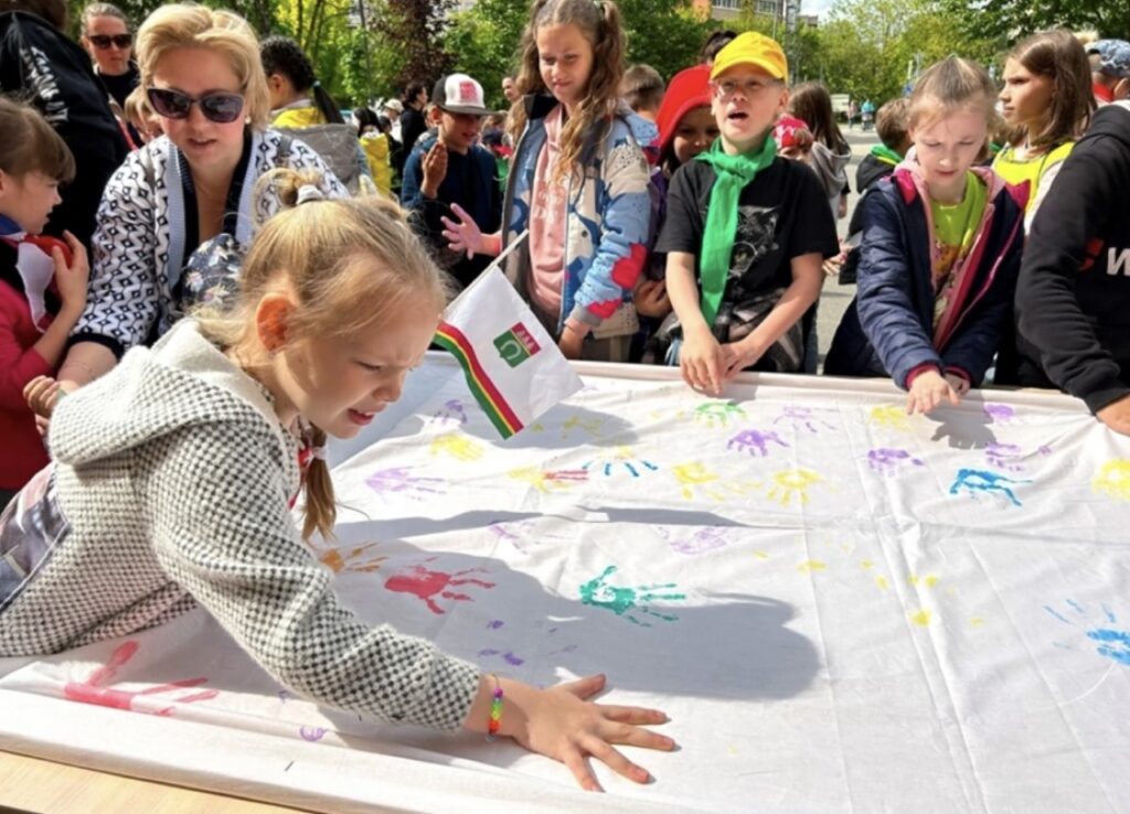 Для ребятишек подготовили настоящий детский праздник – выступление творческих коллективов, игры, забавы, викторины, акцию «Ладошки добра» от благотворительного фонда «Единство добра» и мультфильм в кинотеатре.