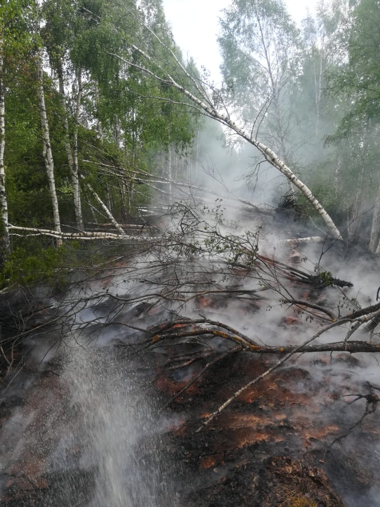 На протяжении двух дней в Суховском СП производили тушение торфяного пожара (Кировский район)
