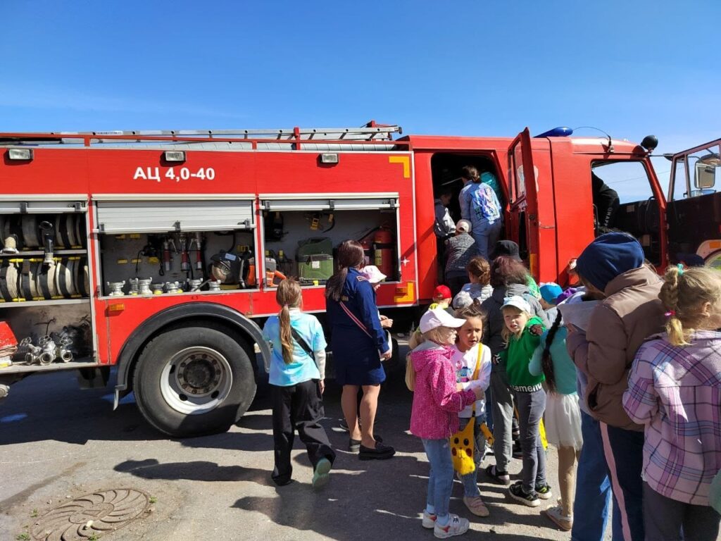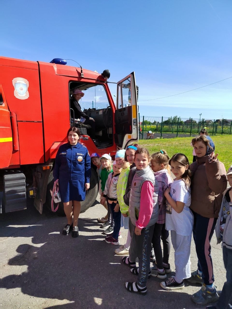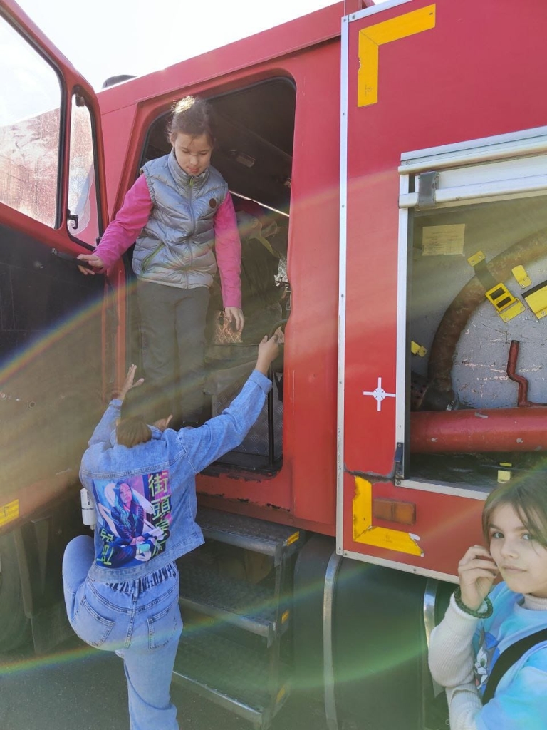 Начальник караула провел экскурсию по автоцистерне, а Олеся Владимировна рассказала о правилах поведения в летний пожароопасный период.