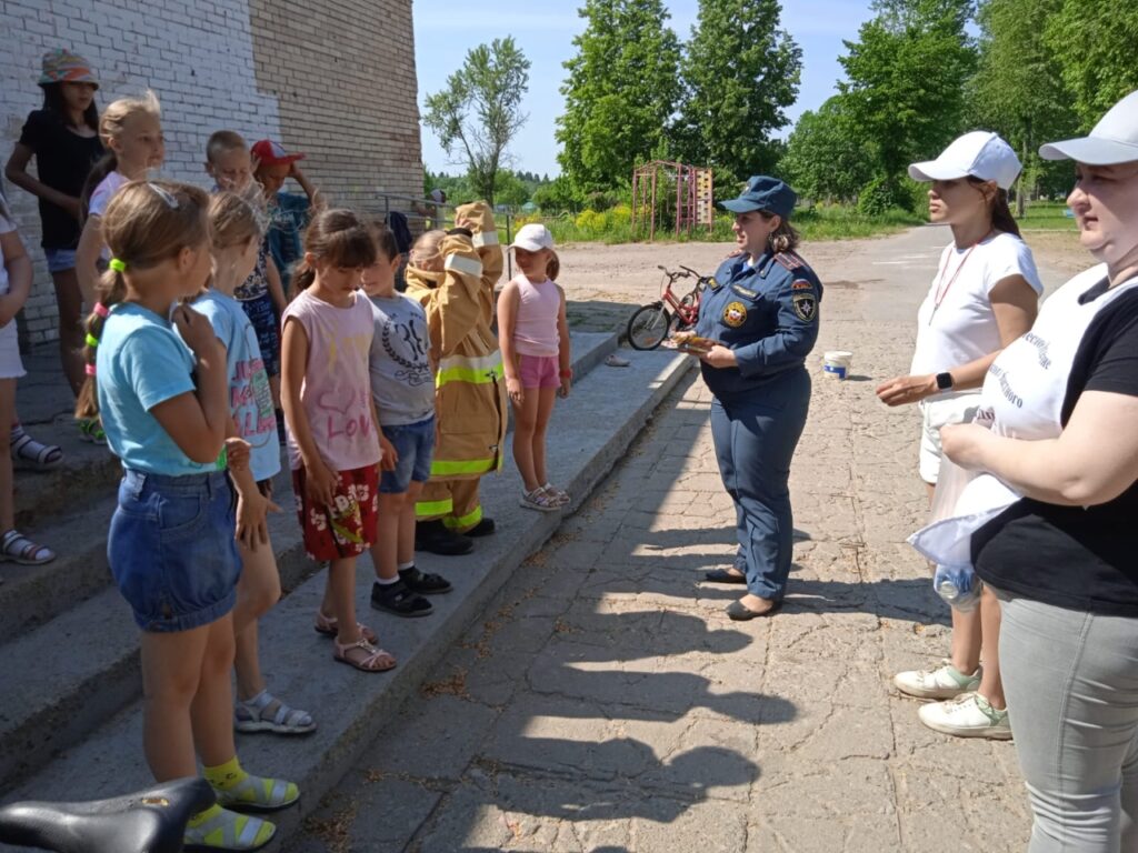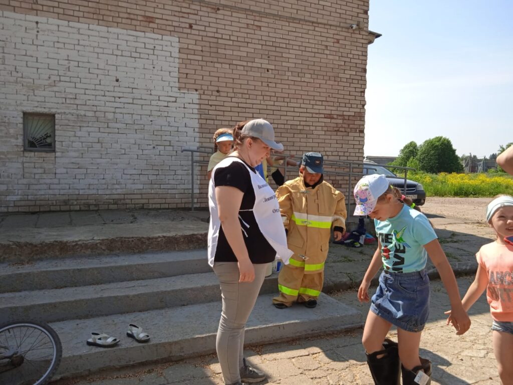В конце мероприятия детям вручили листовки и подарили значки. Напомнили о номере 101 – пожарная служба, 112 – единый номер экстренных служб (с мобильного телефона), 01 с телефонного аппарата.