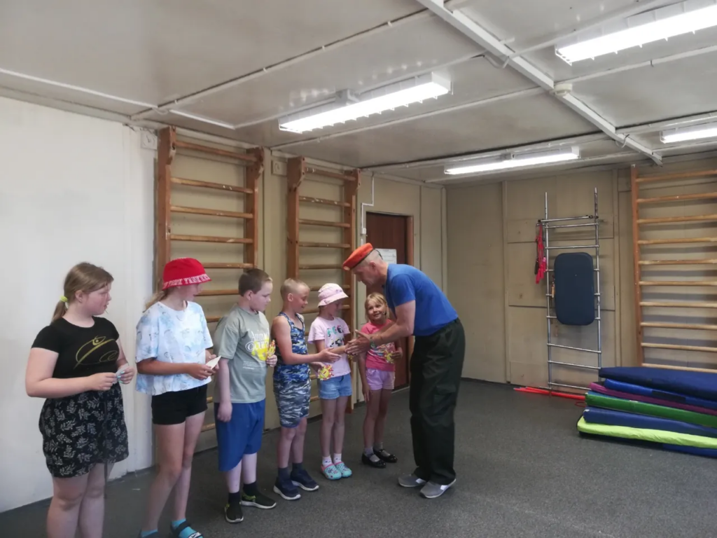 Утро. Начало дня – построение и выход на зарядку. Комплекс упражнений с инструкторами и руководителем, бег, строевые упражнения, игровые эстафеты и подвижные игры.