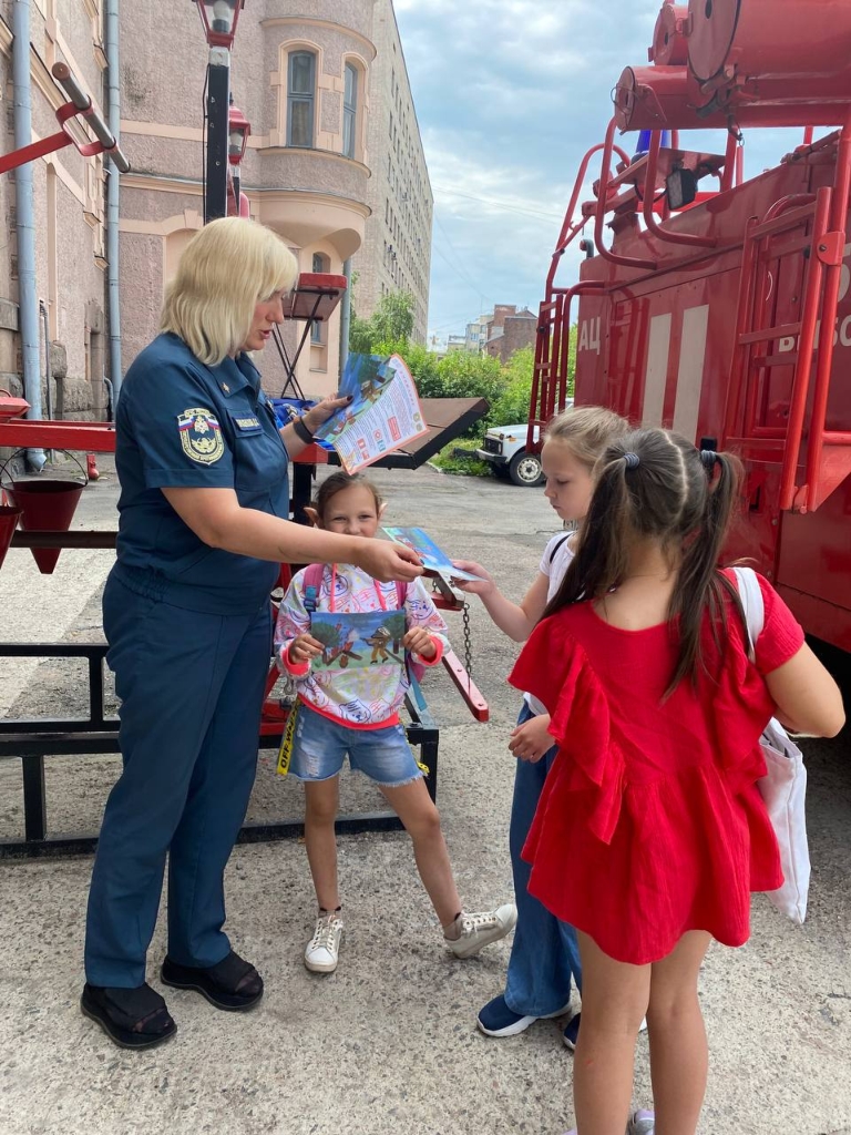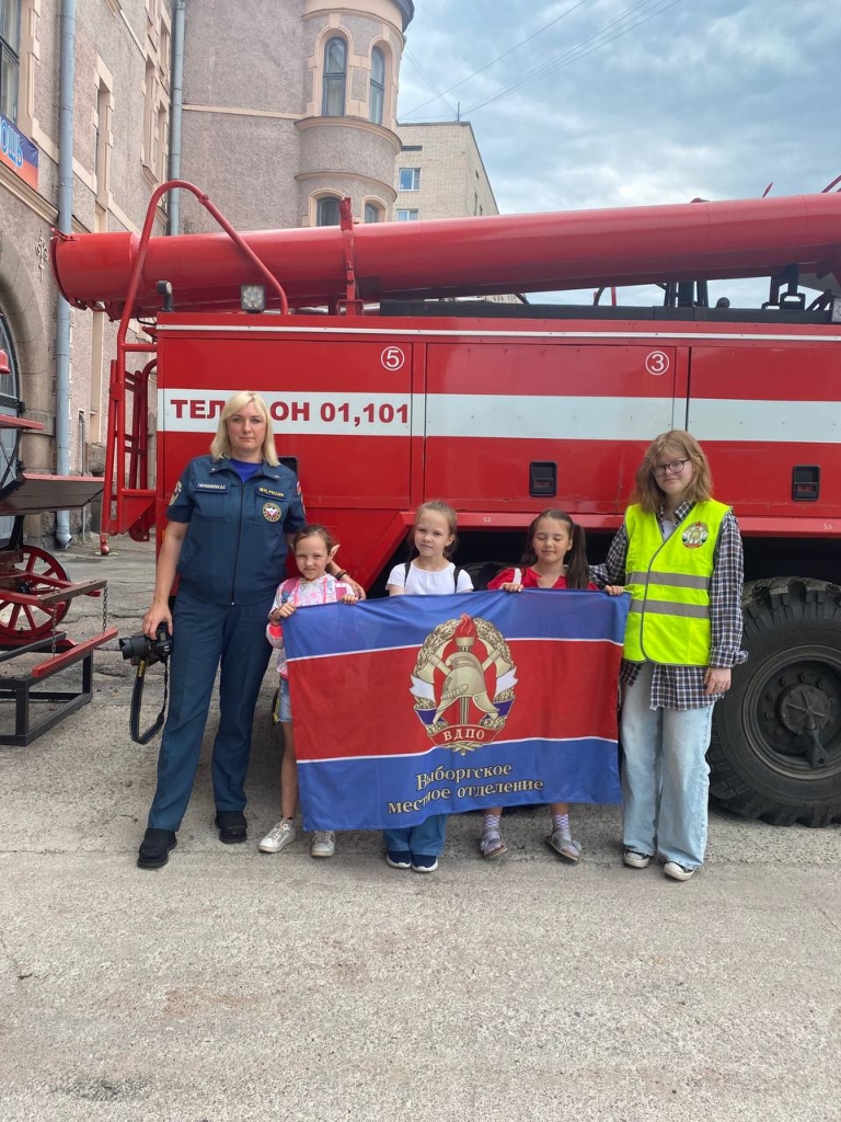 В гости в пожарную часть города Выборга пришел детский школьный летний лагерь с Международного центра развития интеллекта «Obrain».