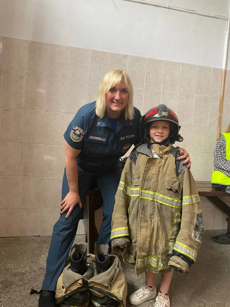 Хоть ребят было и немного, зато очень внимательно слушали и задавали кучу вопросов. Девочки смогли посидеть в пожарном автомобиле, посмотреть, что находится внутри, померить боевую одежду настоящего пожарного и увидеть диспетчерский пункт связи изнутри.