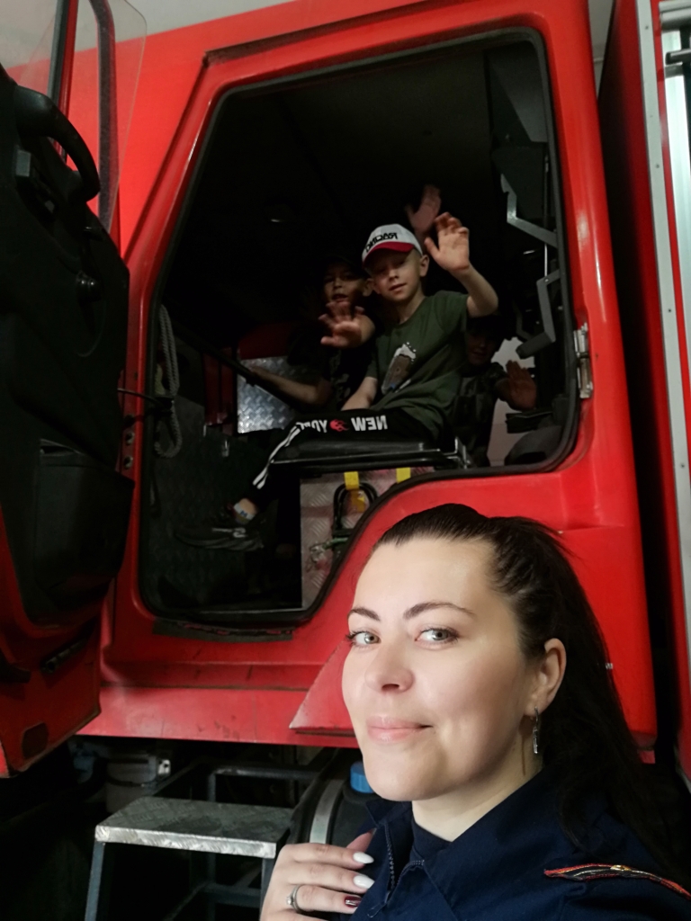 5 июля 2023 г. в гости к пожарным пришли дети из Центра детского творчества. Инструктор по противопожарной профилактике Ломоносовского местного отделения ВДПО ЛО Ахмадуллина О.В. провела экскурсию по 134 пожарной части.