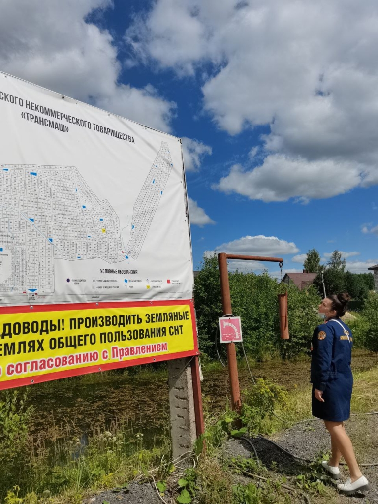13 июля 2023 г. Инструктор по противопожарной профилактике Ломоносовского местного отделения ВДПО ЛО Ахмадуллина О.В. провела профилактический рейд в СНТ «Трансмаш» Виллозского ГП.