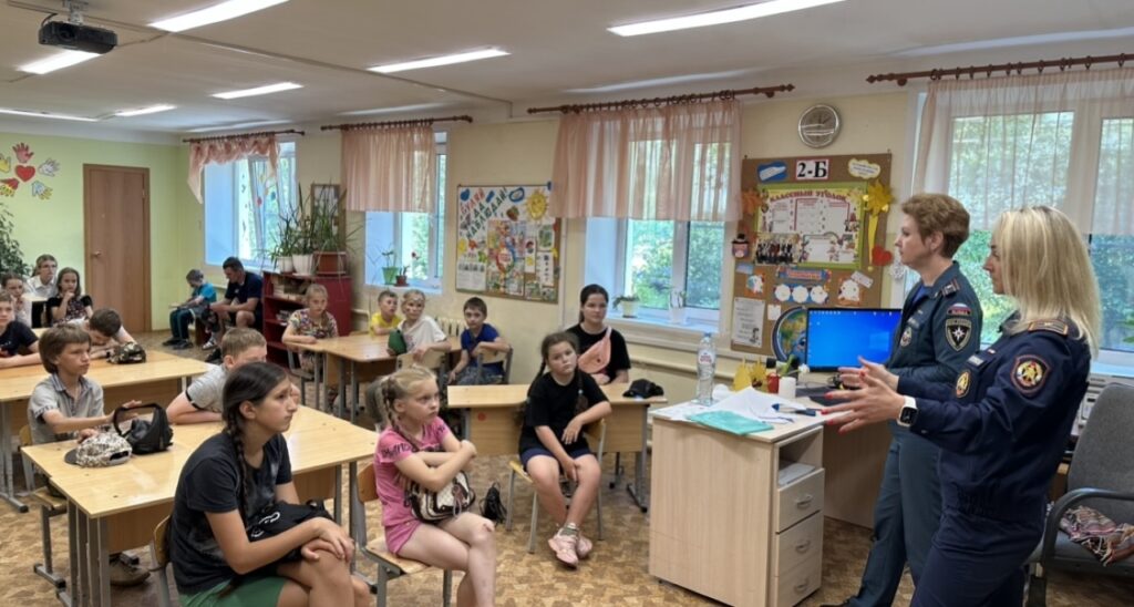 В пришкольном лагере посёлка Сельцо, сотрудники местного отделения ВДПО ЛО и отдела надзорной деятельности и профилактической работы Тосненского района провели важную беседу на противопожарную тему с воспитанниками двух разновозрастных отрядов.