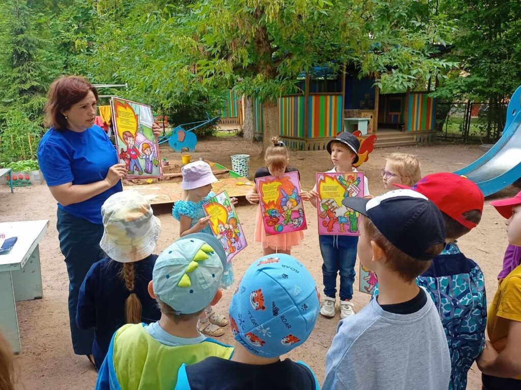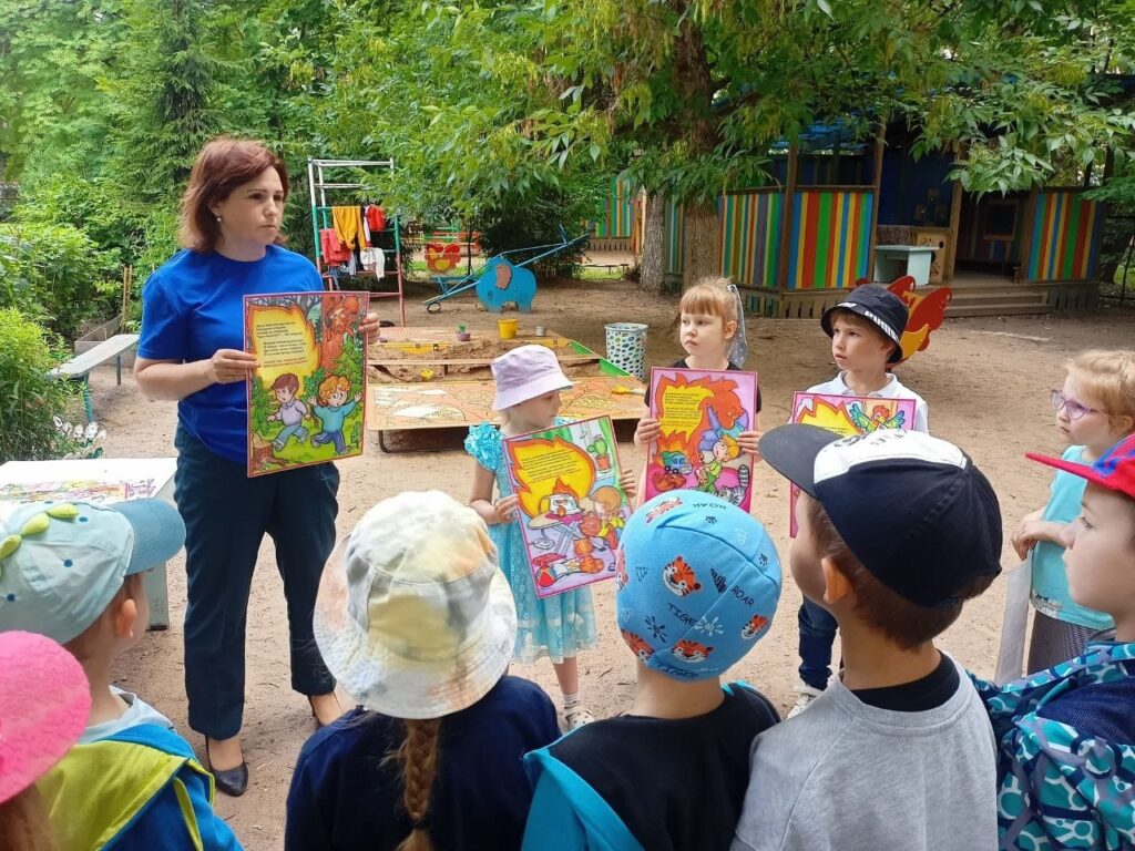 Не раз его читали в детском саду сами воспитатели, рассказывая о пожарах. А вот 7 августа в детский сад пришел сотрудник Гатчинского местного отделения ВДПО ЛО и принес несколько иллюстраций о пожарах, прочитал стишки о том, как надо себя вести, чтобы не случился пожар.