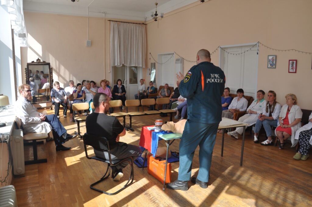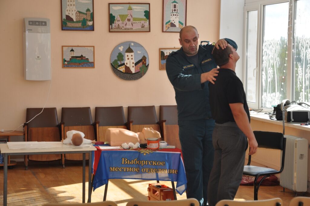 Сотрудники 26 пожарно-спасательного отряда ГУ МЧС России по Ленинградской области совместно Выборгским местным отделением Всероссийского добровольного пожарного общества Ленинградской области посетили ФГБУ ТС «Выборг-3» Минздрава России расположенный в поселке Красный Холм Выборгского района, с курсами по обучению оказания первой доврачебной помощи для работников учреждения.