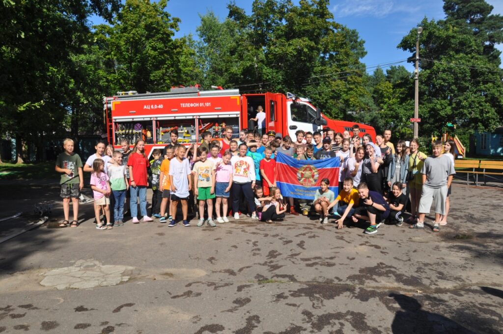 Сотрудники 26 пожарно-спасательного отряда Главного управления МЧС России по Ленинградской области совместно с Выборгским местным отделением Всероссийского добровольного пожарного общества Ленинградской области посетили детский оздоровительный лагерь «Волна» с целью популяризации профессии среди подрастающего поколения профессии «пожарный».