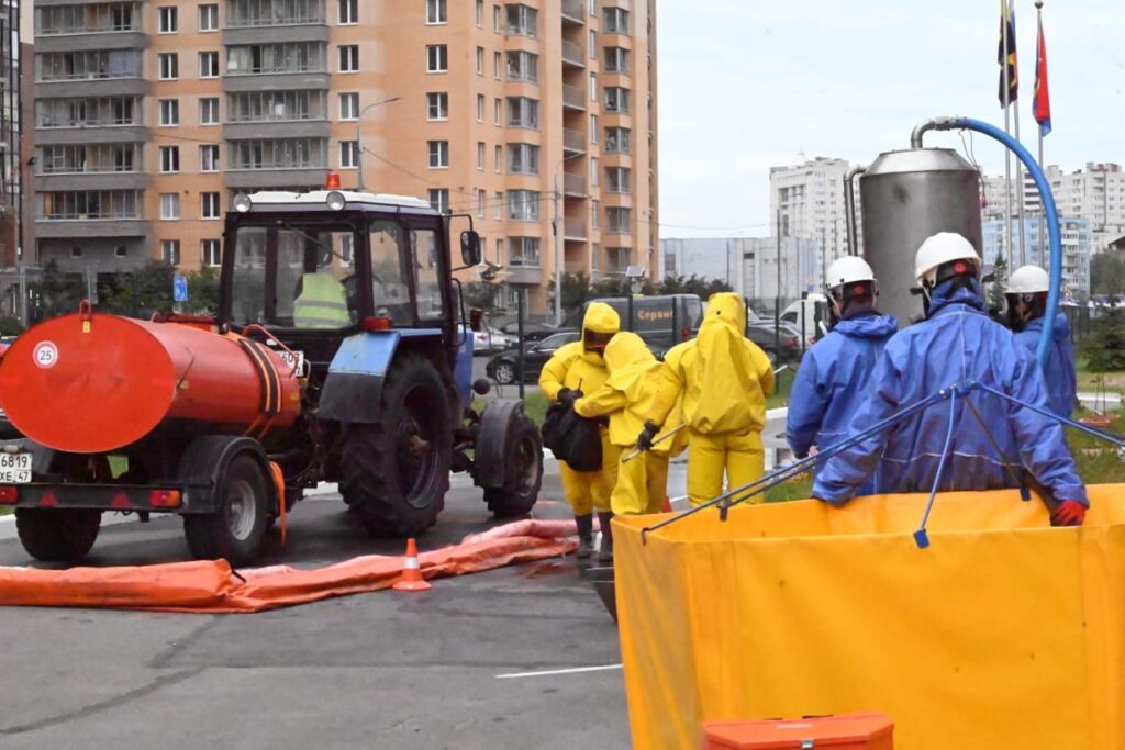 По инициативе администрации муниципального образования «Заневское городское поселение» Всеволожского района на базе 154 пожарной части в городе Кудрово прошли учения по ликвидации последствий разлива нефтепродуктов.