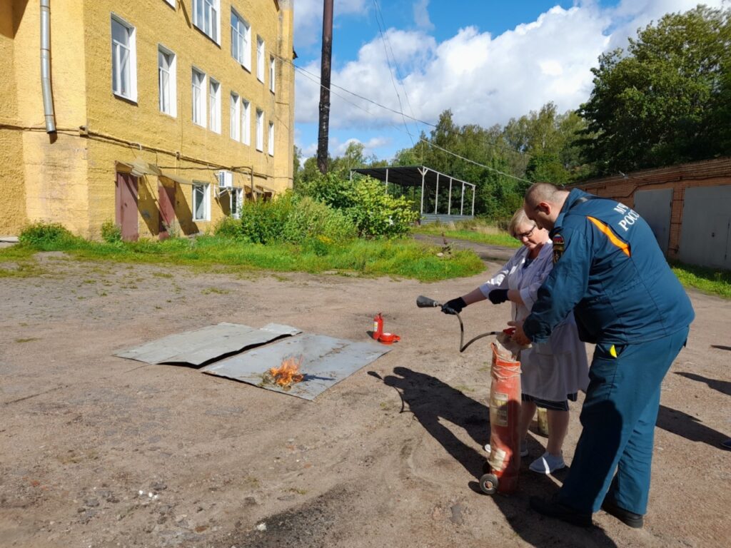 Так, туберкулезный санаторий Выборг-3 в п. Красный холм посетили сотрудники 53 пожарно-спасательной части 26 пожарно-спасательного отряда Главного управления МЧС России и Выборгского местного отделения ВДПО ЛО. Они рассказали, что в начальной стадии пожара огнетушитель может спасти жизнь и имущество, ведь тогда требуется потушить небольшое возгорание или удержать распространение огня до прибытия пожарных, и на практике объяснили правила пользования огнетушителем в экстремальных ситуациях, рассказали о том, каких видов они бывают.