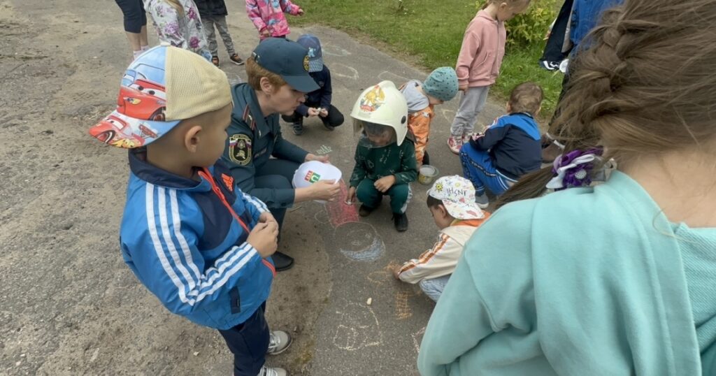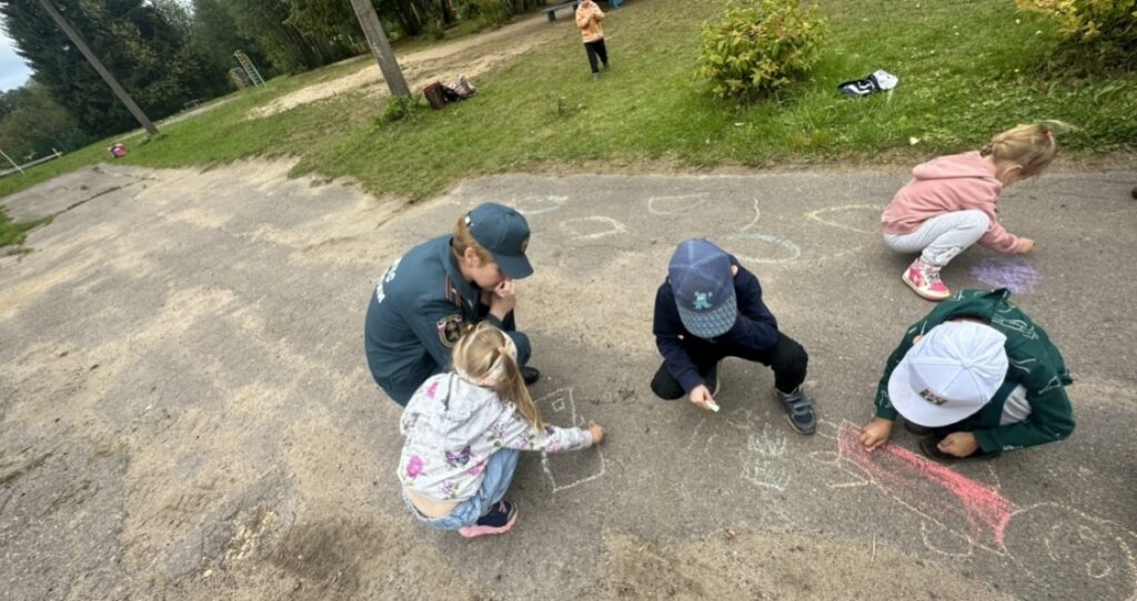 Интересно отметить, что дети, несмотря на свой довольно юный возраст, активно участвовали в обсуждении: старались приводить примеры, вспоминали номера телефонов пожарной охраны, которые потом — даже нарисовали яркими мелками на асфальте.
