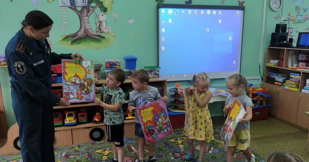 В рамках урока были проведены учения о безопасном поведении дома и на природе, детям довели важную информацию как вести себя в жаркую погоду у водоемов, в лесу. Так же малышам рассказали об опасности детской шалости с огнем и действиях при возникновении пожара в квартире, напомнили какие требования пожарной безопасности им необходимо всегда помнить и соблюдать, чтобы не случилось беда.
