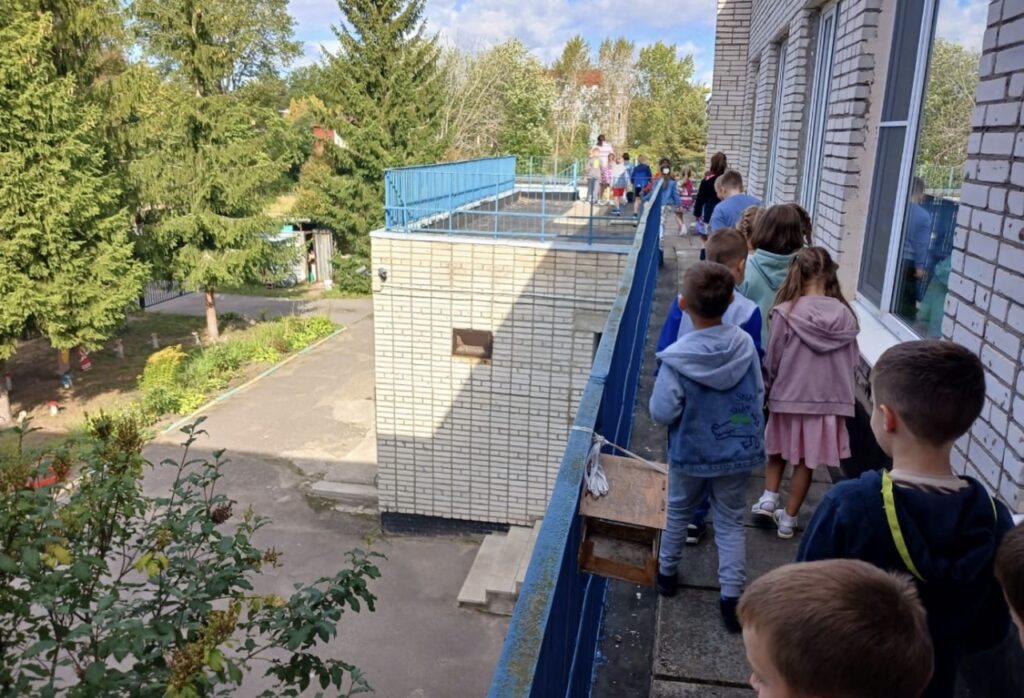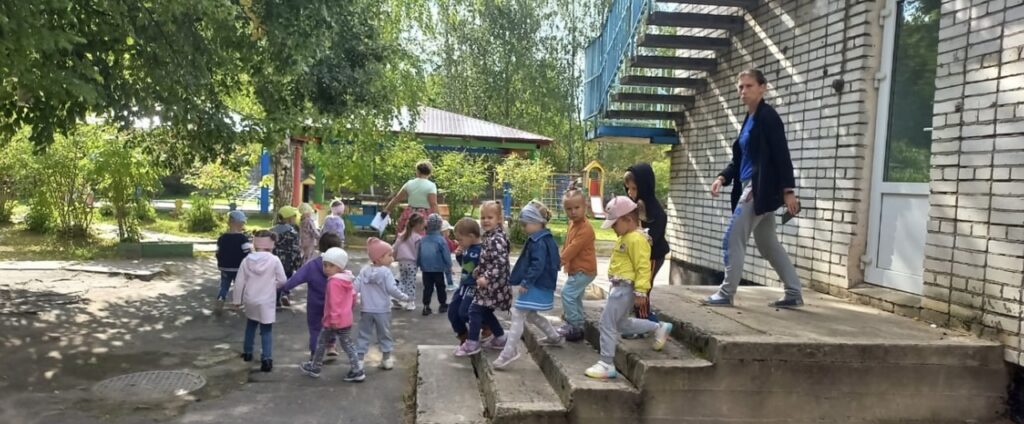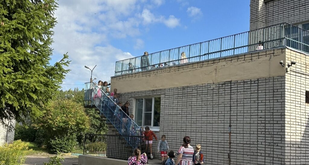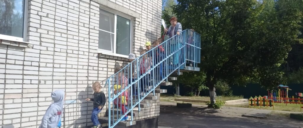 После звукового сигнала тревоги, сотрудники начали эвакуировать детей по заранее определенным безопасным путям. Но поскольку условный очаг возгорания находился в холле первого этажа, им было необходимо скорректировать свои действия в моменте, что тоже добавило определенную сложность в процесс тренировки.