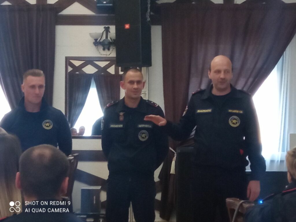 Руководящий и личный состав части поздравили начальники пожарных частей отряда ГПС и вручили подарки, которые пригодятся при улучшении бытовых условий в части.