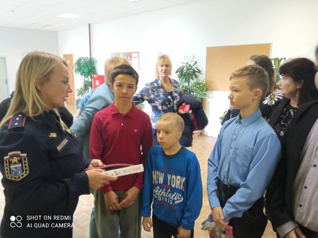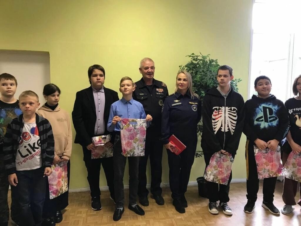 Поздравлять ребят и награждать памятными подарками в школу приехали заместитель Председателя совета местного отделения ВДПО ЛО Миклин В.Н. и инструктор противопожарной профилактики отряда государственной противопожарной службы Чеснова В.В.