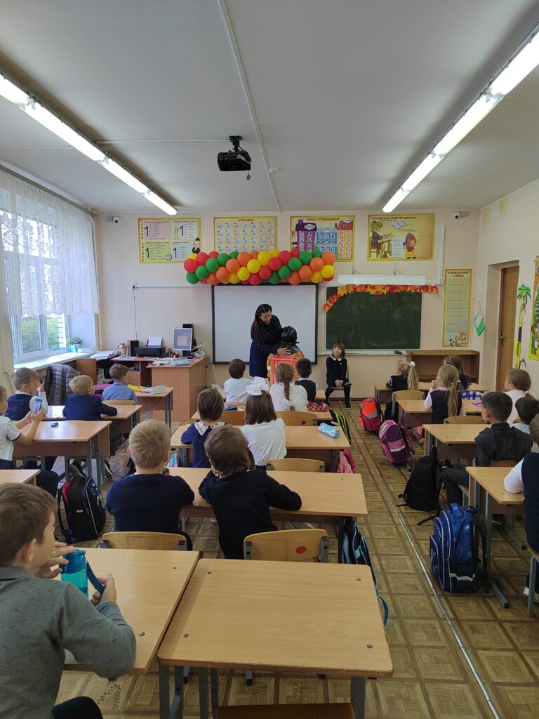 20.09.2023 г. Инструктор по противопожарной профилактике Ломоносовского местного отделения ВДПО ЛО Ахмадуллина О.В. провела урок для 1 «б» класса Низинской школы.