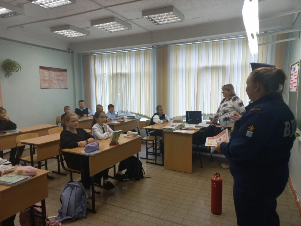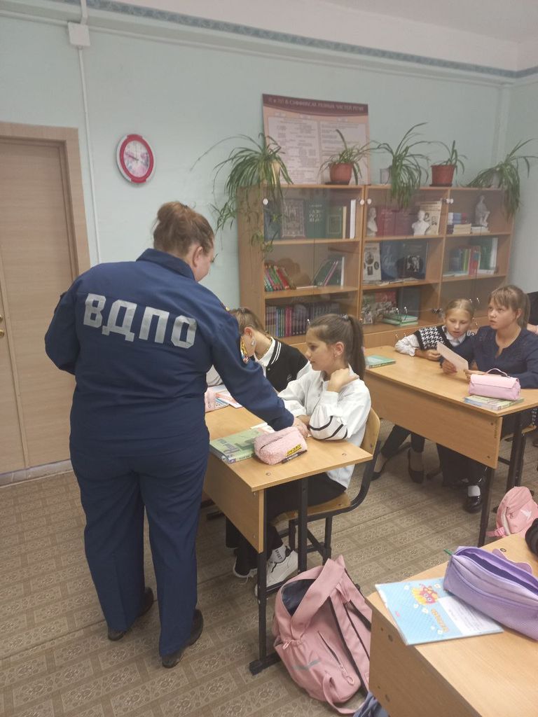 20 сентября 2023 года заместитель Председателя Волосовского местного отделения ВДПО ЛО Янгиляев Алексей Махаремович и специалист по пожарной безопасности Волосовского местного отделения ВДПО ЛО Смирнова Галина Сергеевна провела викторину для 5 класса МОУ «Октябрьская ООШ».